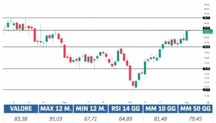 Prima di adottare una decisione di investimento al fine di comprendere appieno i potenziali rischi e benefici connessi alla decisione di investire negli strumenti finanziari quivi menzionati, si invita a leggere attentamente la relativa documentazione di offerta e/o quotazione e, in particolare, le sezioni dedicate ai fattori di rischio connessi all’investimento, ai relativi costi e al trattamento fiscale, e il relativo documento contenente le informazioni chiave (KID), ove disponibile. Tale documentazione è disponibile sul sito web investimenti.bnpparibas.it. L’investimento negli strumenti finanziari quivi menzionati può comportare il rischio di perdita totale o parziale del capitale inizialmente investito. Ove tali strumenti finanziari siano venduti prima della scadenza, l’investitore potrà incorrere anche in perdite in conto capitale. Nel caso in cui tali strumenti finanziari siano acquistati o venduti nel corso della loro durata, il rendimento potrà variare. La presente pubblicazione costituisce materiale pubblicitario e le informazioni in essa contenute hanno scopo meramente informativo e promozionale e non sono da intendersi in alcun modo come ricerca, sollecitazione o raccomandazione all’investimento, offerta al pubblico o consulenza in materia di investimenti. Le informazioni e i grafici a contenuto finanziario quivi riportati sono meramente indicativi e hanno scopo esclusivamente esemplificativo e non esaustivo. I rendimenti passati non sono indicativi, né sono garanzia, dei rendimenti futuri. È responsabilità dell’investitore effettuare un’accurata analisi di tutti i profili fiscali, legali e regolamentari (inclusi i fattori di rischio, tra i quali, i fattori di rischio legati ai tassi di interesse, i fattori di rischio di default e i fattori di rischio legati all’assenza di liquidità) connessi all’investimento negli strumenti finanziari quivi menzionati. BNP Paribas e/o altra società del gruppo BNP Paribas non potranno essere considerate responsabili delle conseguenze finanziarie o di altra natura derivanti dall’investimento in tali strumenti finanziari. Informazioni aggiornate sulla quotazione di questi ultimi sono disponibili sul sito web investimenti.bnpparibas.it. Le raccomandazioni di investimento quivi contenute non soddisfano i requisiti di legge relativi all’indipendenza della ricerca in materia di investimenti e non sono soggette ad alcun divieto di esecuzione di operazioni su strumenti finanziari prima della loro divulgazione.