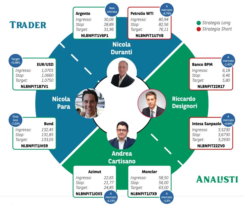 Borsa in Diretta è la newsletter giornaliera di BNP Paribas. Ogni lunedì non perderti l'appuntamento di Weekly FTSE MIB, pillola video in cui si analizza il principale indice di Borsa Italiana e si forniscono strategie operative per la settimana entrante. Inoltre, quotidianamente riceverai informazioni riguardanti notizie finanziarie e appuntamenti macroeconomici della giornata, analisi tecnica dei principali indici azionari FTSE MIB, DAX e S&P500 e aggiornamenti delle Trade Idea fatte dai migliori trader italiani durante House of Trading.