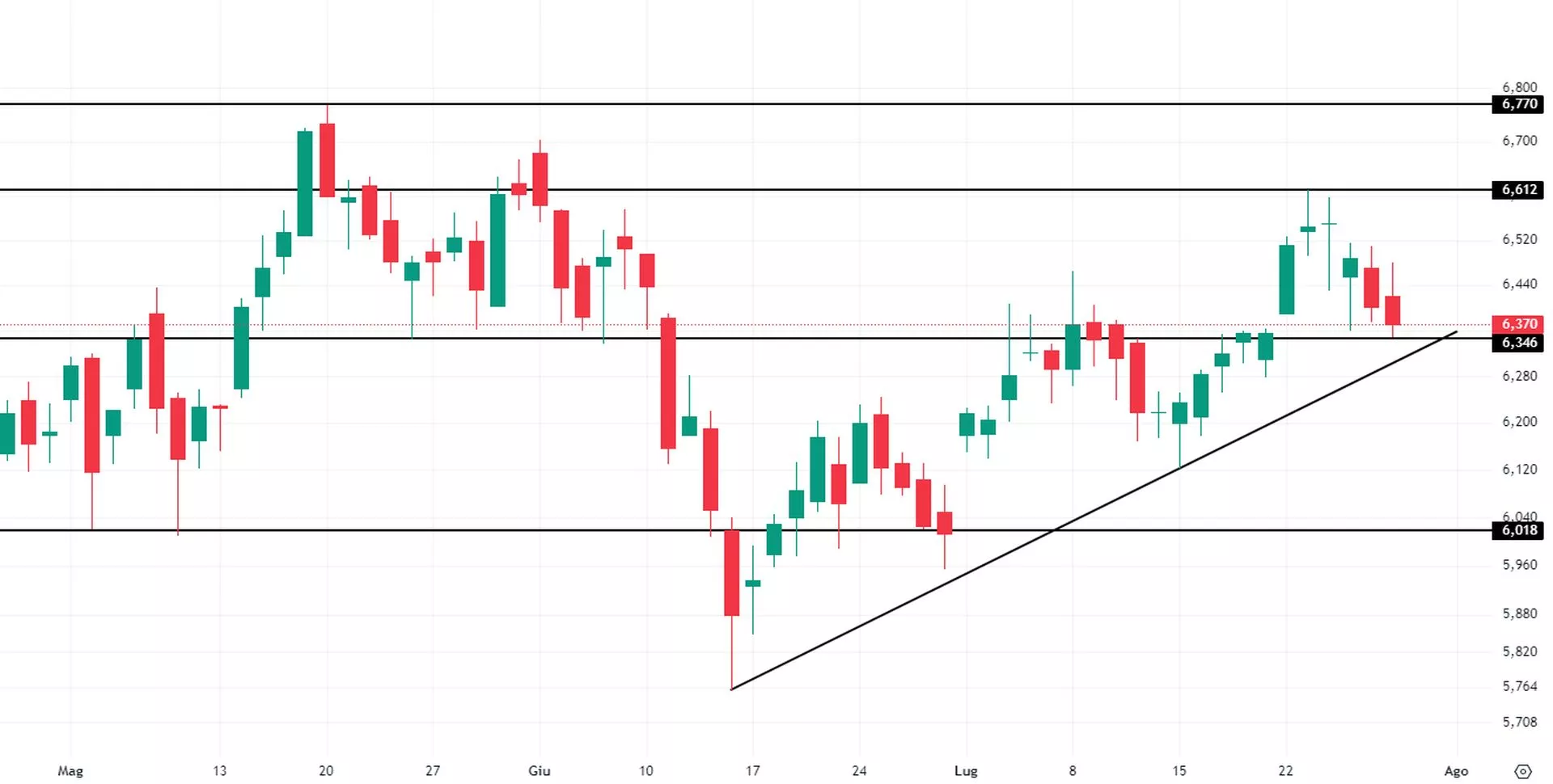 Borsa in Diretta è la newsletter giornaliera di BNP Paribas. Ogni lunedì non perderti l'appuntamento di Weekly FTSE MIB, pillola video in cui si analizza il principale indice di Borsa Italiana e si forniscono strategie operative per la settimana entrante. Inoltre, quotidianamente riceverai informazioni riguardanti notizie finanziarie e appuntamenti macroeconomici della giornata, analisi tecnica dei principali indici azionari FTSE MIB, DAX e S&P500 e aggiornamenti delle Trade Idea fatte dai migliori trader italiani durante House of Trading.