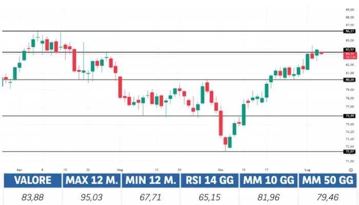 Prima di adottare una decisione di investimento al fine di comprendere appieno i potenziali rischi e benefici connessi alla decisione di investire negli strumenti finanziari quivi menzionati, si invita a leggere attentamente la relativa documentazione di offerta e/o quotazione e, in particolare, le sezioni dedicate ai fattori di rischio connessi all’investimento, ai relativi costi e al trattamento fiscale, e il relativo documento contenente le informazioni chiave (KID), ove disponibile. Tale documentazione è disponibile sul sito web investimenti.bnpparibas.it. L’investimento negli strumenti finanziari quivi menzionati può comportare il rischio di perdita totale o parziale del capitale inizialmente investito. Ove tali strumenti finanziari siano venduti prima della scadenza, l’investitore potrà incorrere anche in perdite in conto capitale. Nel caso in cui tali strumenti finanziari siano acquistati o venduti nel corso della loro durata, il rendimento potrà variare. La presente pubblicazione costituisce materiale pubblicitario e le informazioni in essa contenute hanno scopo meramente informativo e promozionale e non sono da intendersi in alcun modo come ricerca, sollecitazione o raccomandazione all’investimento, offerta al pubblico o consulenza in materia di investimenti. Le informazioni e i grafici a contenuto finanziario quivi riportati sono meramente indicativi e hanno scopo esclusivamente esemplificativo e non esaustivo. I rendimenti passati non sono indicativi, né sono garanzia, dei rendimenti futuri. È responsabilità dell’investitore effettuare un’accurata analisi di tutti i profili fiscali, legali e regolamentari (inclusi i fattori di rischio, tra i quali, i fattori di rischio legati ai tassi di interesse, i fattori di rischio di default e i fattori di rischio legati all’assenza di liquidità) connessi all’investimento negli strumenti finanziari quivi menzionati. BNP Paribas e/o altra società del gruppo BNP Paribas non potranno essere considerate responsabili delle conseguenze finanziarie o di altra natura derivanti dall’investimento in tali strumenti finanziari. Informazioni aggiornate sulla quotazione di questi ultimi sono disponibili sul sito web investimenti.bnpparibas.it. Le raccomandazioni di investimento quivi contenute non soddisfano i requisiti di legge relativi all’indipendenza della ricerca in materia di investimenti e non sono soggette ad alcun divieto di esecuzione di operazioni su strumenti finanziari prima della loro divulgazione.