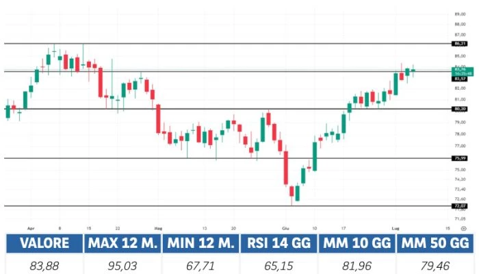 Prima di adottare una decisione di investimento al fine di comprendere appieno i potenziali rischi e benefici connessi alla decisione di investire negli strumenti finanziari quivi menzionati, si invita a leggere attentamente la relativa documentazione di offerta e/o quotazione e, in particolare, le sezioni dedicate ai fattori di rischio connessi all’investimento, ai relativi costi e al trattamento fiscale, e il relativo documento contenente le informazioni chiave (KID), ove disponibile. Tale documentazione è disponibile sul sito web investimenti.bnpparibas.it. L’investimento negli strumenti finanziari quivi menzionati può comportare il rischio di perdita totale o parziale del capitale inizialmente investito. Ove tali strumenti finanziari siano venduti prima della scadenza, l’investitore potrà incorrere anche in perdite in conto capitale. Nel caso in cui tali strumenti finanziari siano acquistati o venduti nel corso della loro durata, il rendimento potrà variare. La presente pubblicazione costituisce materiale pubblicitario e le informazioni in essa contenute hanno scopo meramente informativo e promozionale e non sono da intendersi in alcun modo come ricerca, sollecitazione o raccomandazione all’investimento, offerta al pubblico o consulenza in materia di investimenti. Le informazioni e i grafici a contenuto finanziario quivi riportati sono meramente indicativi e hanno scopo esclusivamente esemplificativo e non esaustivo. I rendimenti passati non sono indicativi, né sono garanzia, dei rendimenti futuri. È responsabilità dell’investitore effettuare un’accurata analisi di tutti i profili fiscali, legali e regolamentari (inclusi i fattori di rischio, tra i quali, i fattori di rischio legati ai tassi di interesse, i fattori di rischio di default e i fattori di rischio legati all’assenza di liquidità) connessi all’investimento negli strumenti finanziari quivi menzionati. BNP Paribas e/o altra società del gruppo BNP Paribas non potranno essere considerate responsabili delle conseguenze finanziarie o di altra natura derivanti dall’investimento in tali strumenti finanziari. Informazioni aggiornate sulla quotazione di questi ultimi sono disponibili sul sito web investimenti.bnpparibas.it. Le raccomandazioni di investimento quivi contenute non soddisfano i requisiti di legge relativi all’indipendenza della ricerca in materia di investimenti e non sono soggette ad alcun divieto di esecuzione di operazioni su strumenti finanziari prima della loro divulgazione.