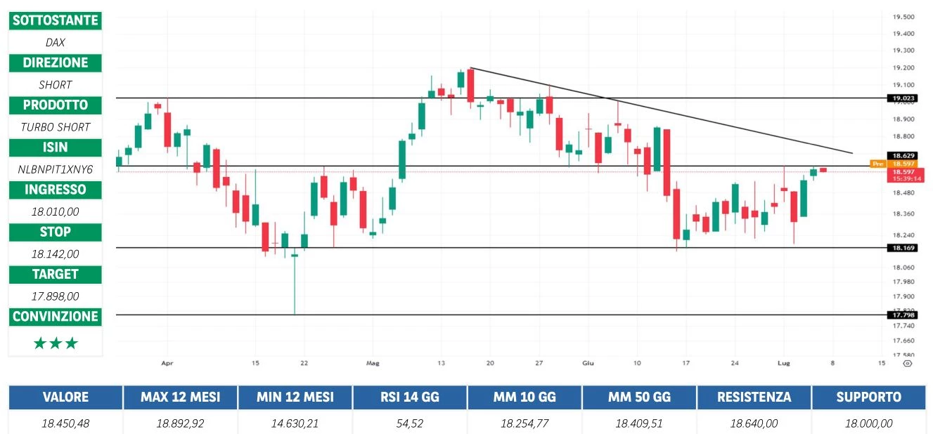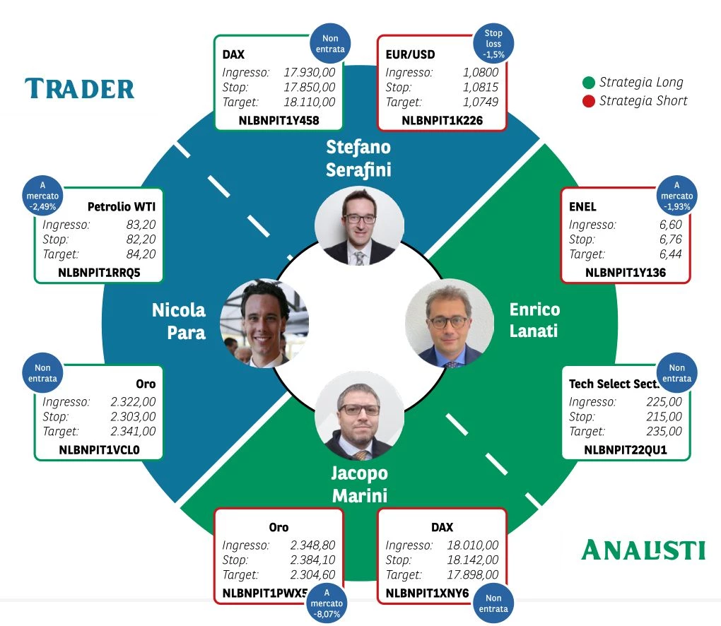 Borsa in Diretta è la newsletter giornaliera di BNP Paribas. Ogni lunedì non perderti l'appuntamento di Weekly FTSE MIB, pillola video in cui si analizza il principale indice di Borsa Italiana e si forniscono strategie operative per la settimana entrante. Inoltre, quotidianamente riceverai informazioni riguardanti notizie finanziarie e appuntamenti macroeconomici della giornata, analisi tecnica dei principali indici azionari FTSE MIB, DAX e S&P500 e aggiornamenti delle Trade Idea fatte dai migliori trader italiani durante House of Trading.