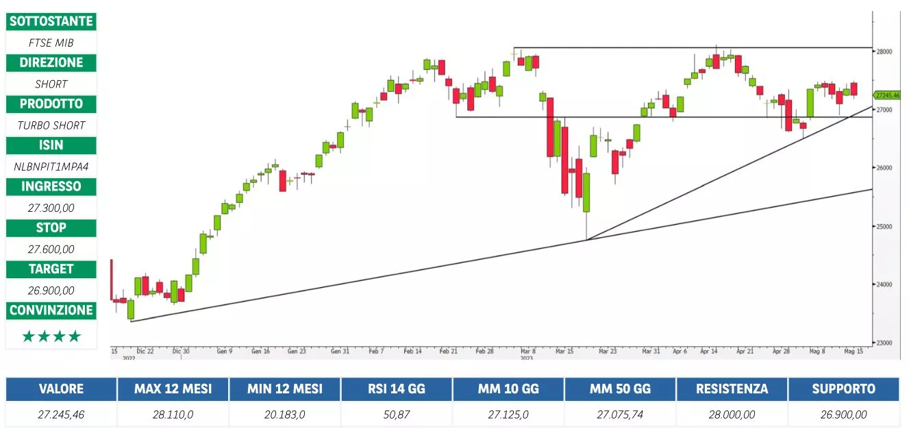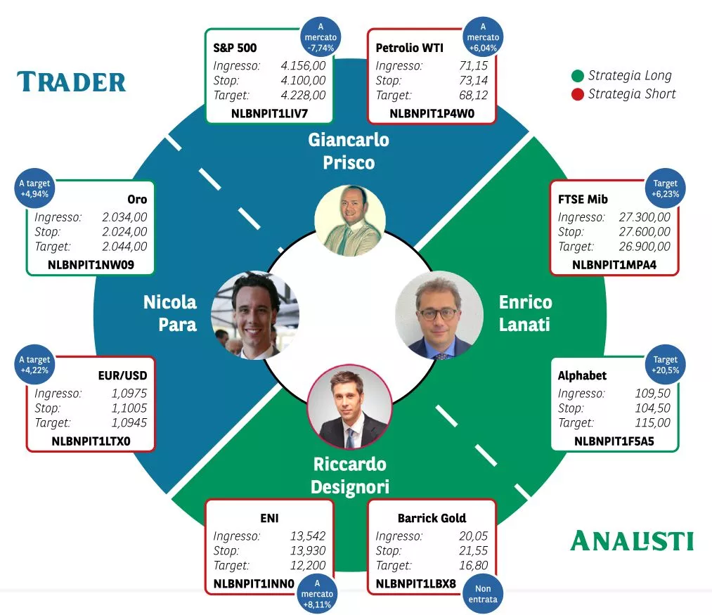 Borsa in Diretta è la newsletter giornaliera di BNP Paribas. Ogni lunedì non perderti l'appuntamento di Weekly FTSE MIB, pillola video in cui si analizza il principale indice di Borsa Italiana e si forniscono strategie operative per la settimana entrante. Inoltre, quotidianamente riceverai informazioni riguardanti notizie finanziarie e appuntamenti macroeconomici della giornata, analisi tecnica dei principali indici azionari FTSE MIB, DAX e S&P500 e aggiornamenti delle Trade Idea fatte dai migliori trader italiani durante House of Trading.
