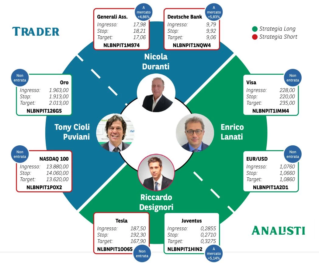 Borsa in Diretta è la newsletter giornaliera di BNP Paribas. Ogni lunedì non perderti l'appuntamento di Weekly FTSE MIB, pillola video in cui si analizza il principale indice di Borsa Italiana e si forniscono strategie operative per la settimana entrante. Inoltre, quotidianamente riceverai informazioni riguardanti notizie finanziarie e appuntamenti macroeconomici della giornata, analisi tecnica dei principali indici azionari FTSE MIB, DAX e S&P500 e aggiornamenti delle Trade Idea fatte dai migliori trader italiani durante House of Trading.