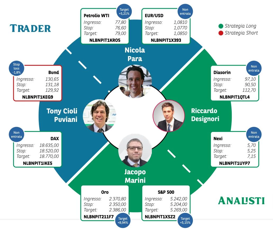 Borsa in Diretta è la newsletter giornaliera di BNP Paribas. Ogni lunedì non perderti l'appuntamento di Weekly FTSE MIB, pillola video in cui si analizza il principale indice di Borsa Italiana e si forniscono strategie operative per la settimana entrante. Inoltre, quotidianamente riceverai informazioni riguardanti notizie finanziarie e appuntamenti macroeconomici della giornata, analisi tecnica dei principali indici azionari FTSE MIB, DAX e S&P500 e aggiornamenti delle Trade Idea fatte dai migliori trader italiani durante House of Trading.