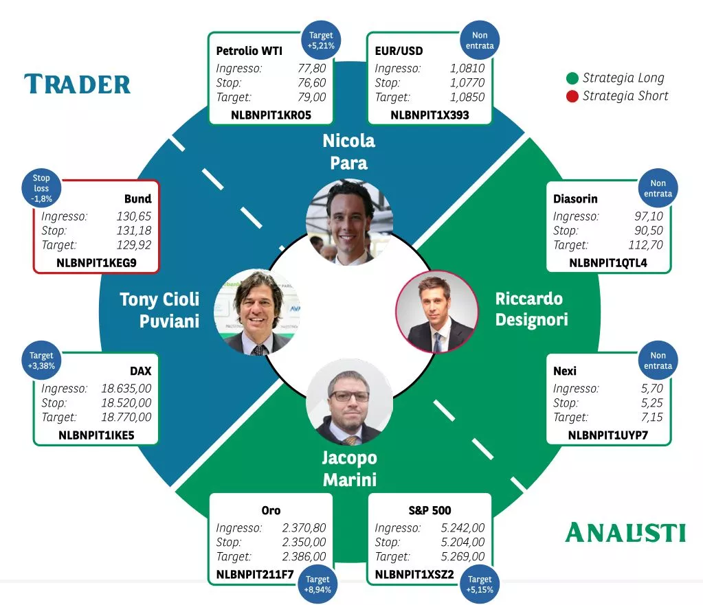 Borsa in Diretta è la newsletter giornaliera di BNP Paribas. Ogni lunedì non perderti l'appuntamento di Weekly FTSE MIB, pillola video in cui si analizza il principale indice di Borsa Italiana e si forniscono strategie operative per la settimana entrante. Inoltre, quotidianamente riceverai informazioni riguardanti notizie finanziarie e appuntamenti macroeconomici della giornata, analisi tecnica dei principali indici azionari FTSE MIB, DAX e S&P500 e aggiornamenti delle Trade Idea fatte dai migliori trader italiani durante House of Trading.