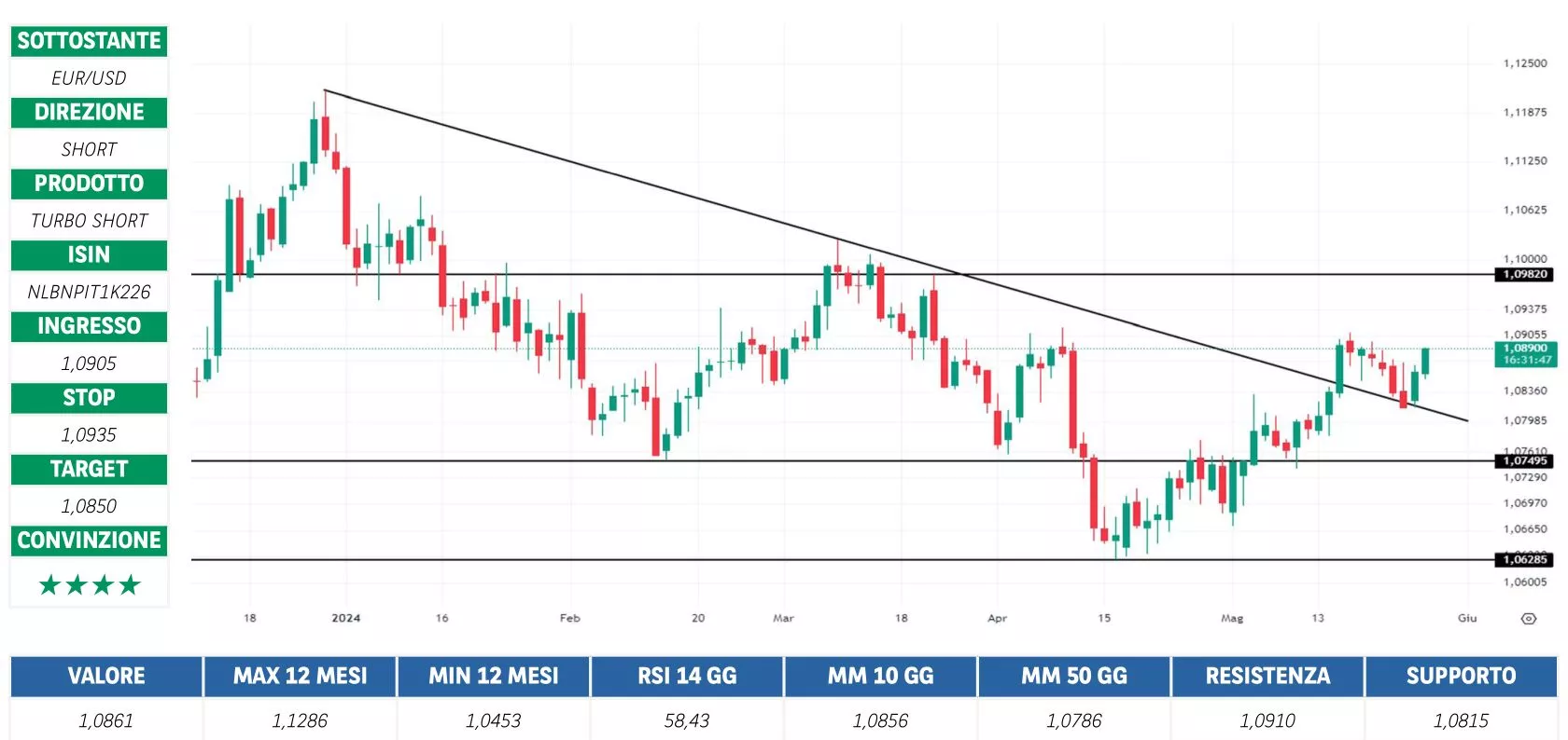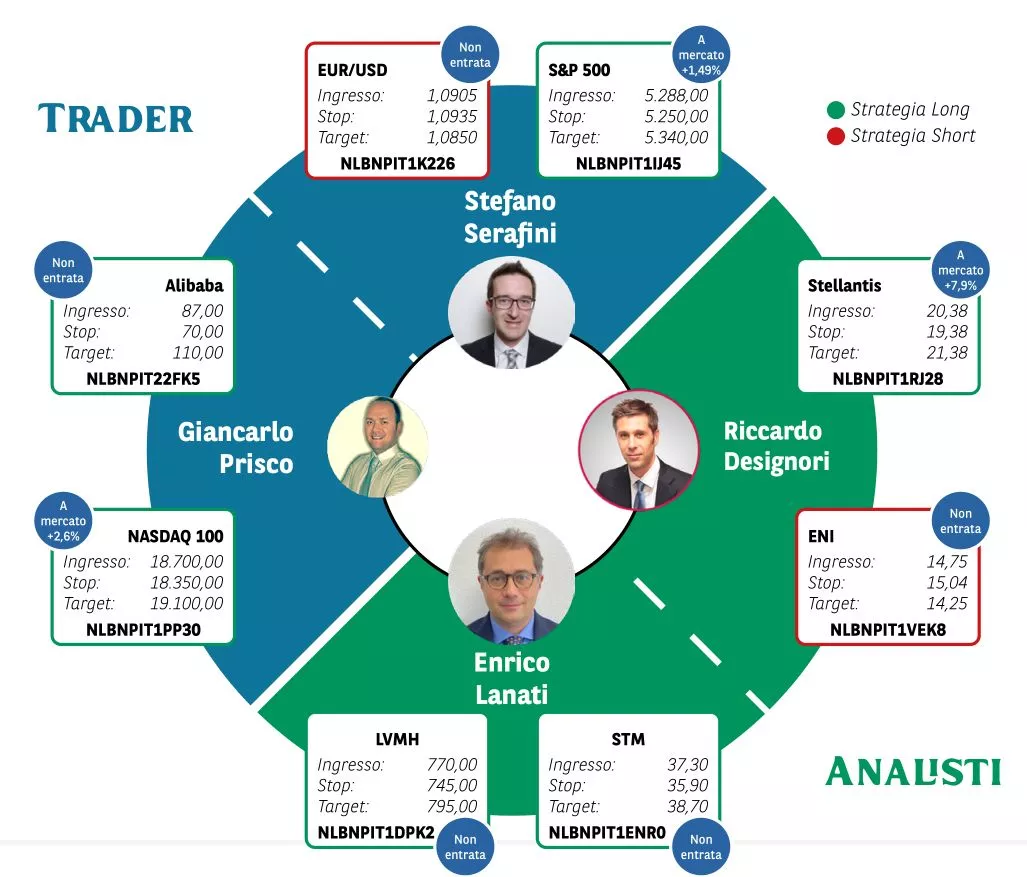Borsa in Diretta è la newsletter giornaliera di BNP Paribas. Ogni lunedì non perderti l'appuntamento di Weekly FTSE MIB, pillola video in cui si analizza il principale indice di Borsa Italiana e si forniscono strategie operative per la settimana entrante. Inoltre, quotidianamente riceverai informazioni riguardanti notizie finanziarie e appuntamenti macroeconomici della giornata, analisi tecnica dei principali indici azionari FTSE MIB, DAX e S&P500 e aggiornamenti delle Trade Idea fatte dai migliori trader italiani durante House of Trading.