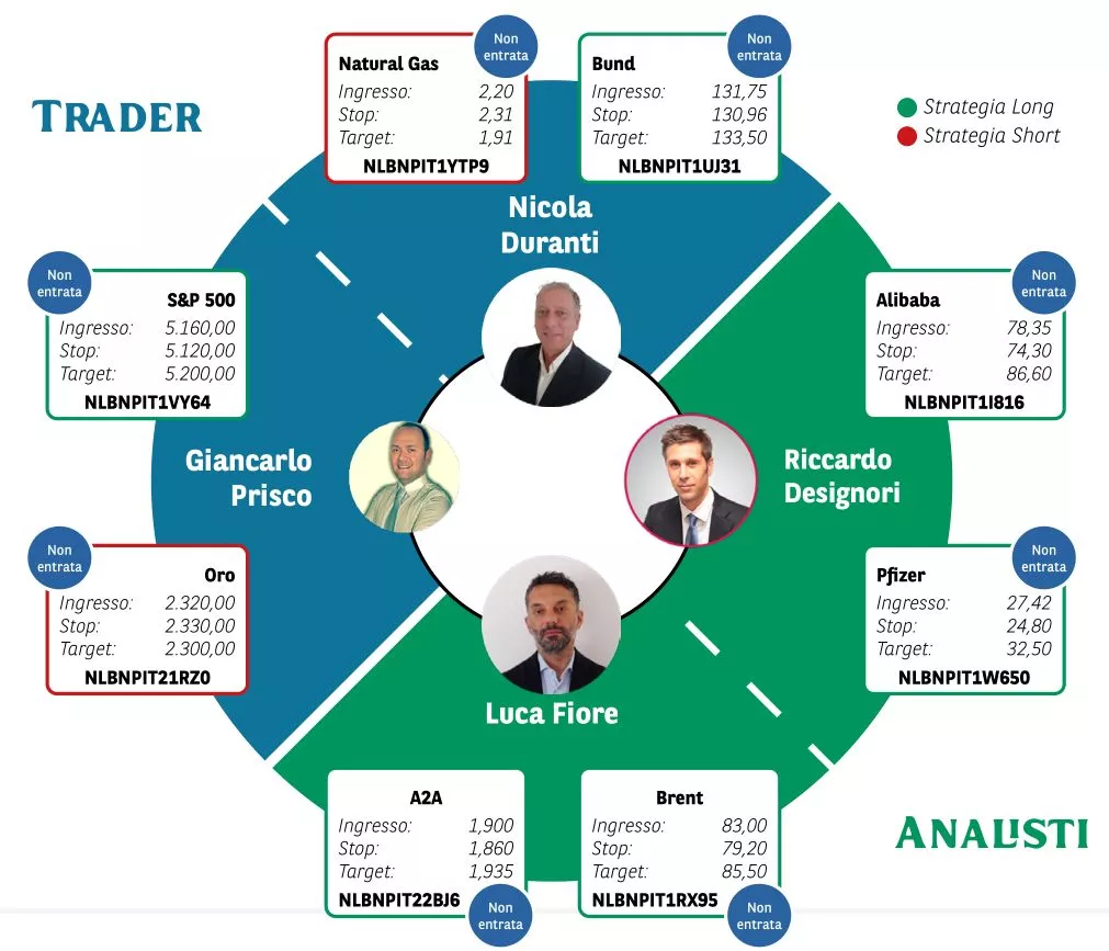 Borsa in Diretta è la newsletter giornaliera di BNP Paribas. Ogni lunedì non perderti l'appuntamento di Weekly FTSE MIB, pillola video in cui si analizza il principale indice di Borsa Italiana e si forniscono strategie operative per la settimana entrante. Inoltre, quotidianamente riceverai informazioni riguardanti notizie finanziarie e appuntamenti macroeconomici della giornata, analisi tecnica dei principali indici azionari FTSE MIB, DAX e S&P500 e aggiornamenti delle Trade Idea fatte dai migliori trader italiani durante House of Trading.