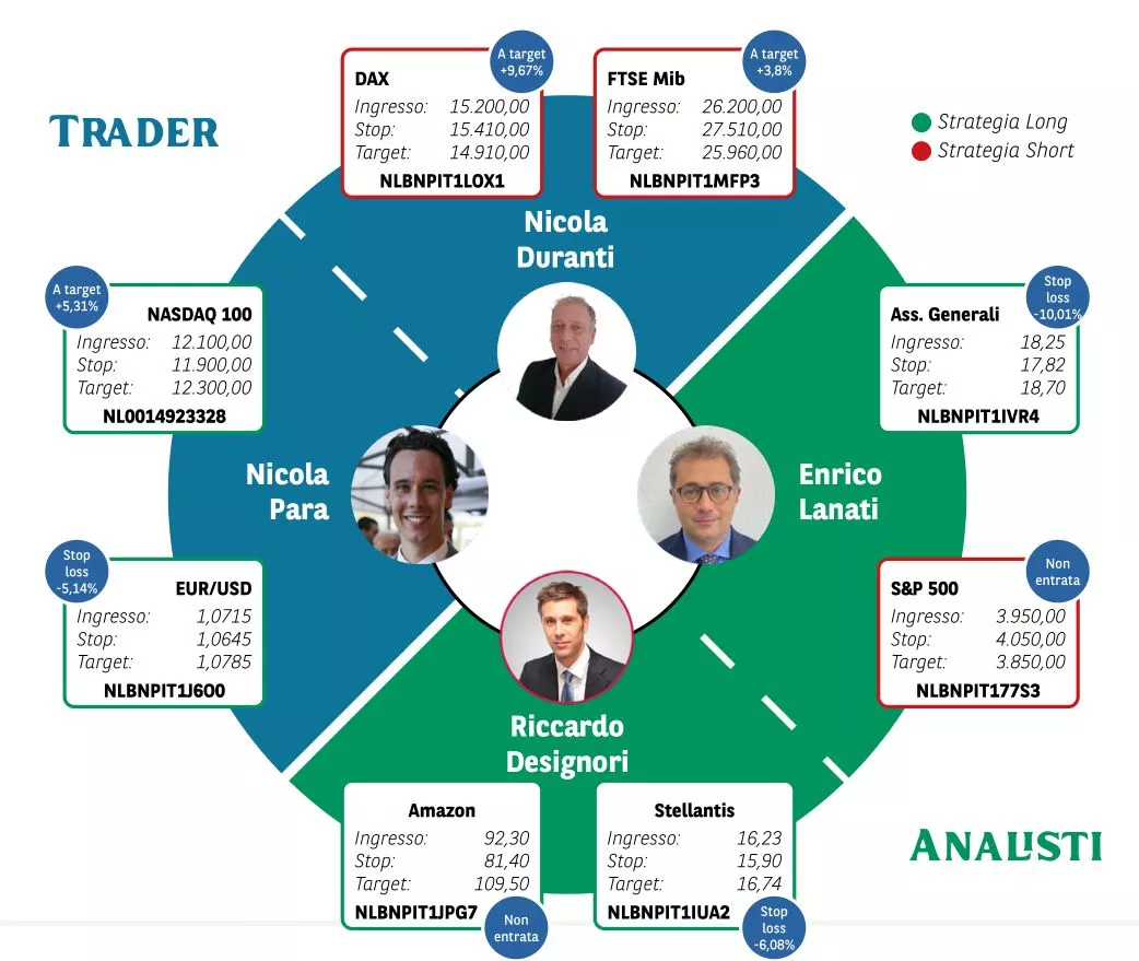 Borsa in Diretta è la newsletter giornaliera di BNP Paribas. Ogni lunedì non perderti l'appuntamento di Weekly FTSE MIB, pillola video in cui si analizza il principale indice di Borsa Italiana e si forniscono strategie operative per la settimana entrante. Inoltre, quotidianamente riceverai informazioni riguardanti notizie finanziarie e appuntamenti macroeconomici della giornata, analisi tecnica dei principali indici azionari FTSE MIB, DAX e S&P500 e aggiornamenti delle Trade Idea fatte dai migliori trader italiani durante House of Trading.