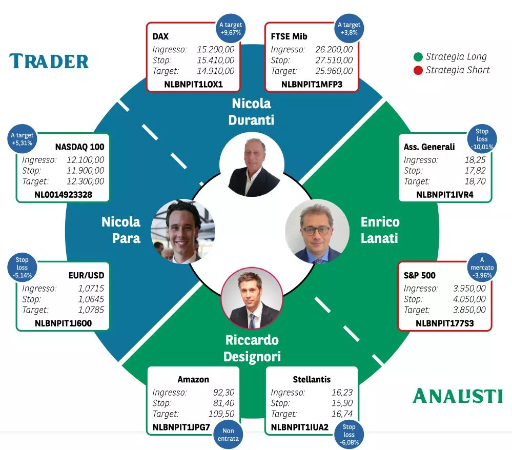 Borsa in Diretta è la newsletter giornaliera di BNP Paribas. Ogni lunedì non perderti l'appuntamento di Weekly FTSE MIB, pillola video in cui si analizza il principale indice di Borsa Italiana e si forniscono strategie operative per la settimana entrante. Inoltre, quotidianamente riceverai informazioni riguardanti notizie finanziarie e appuntamenti macroeconomici della giornata, analisi tecnica dei principali indici azionari FTSE MIB, DAX e S&P500 e aggiornamenti delle Trade Idea fatte dai migliori trader italiani durante House of Trading.