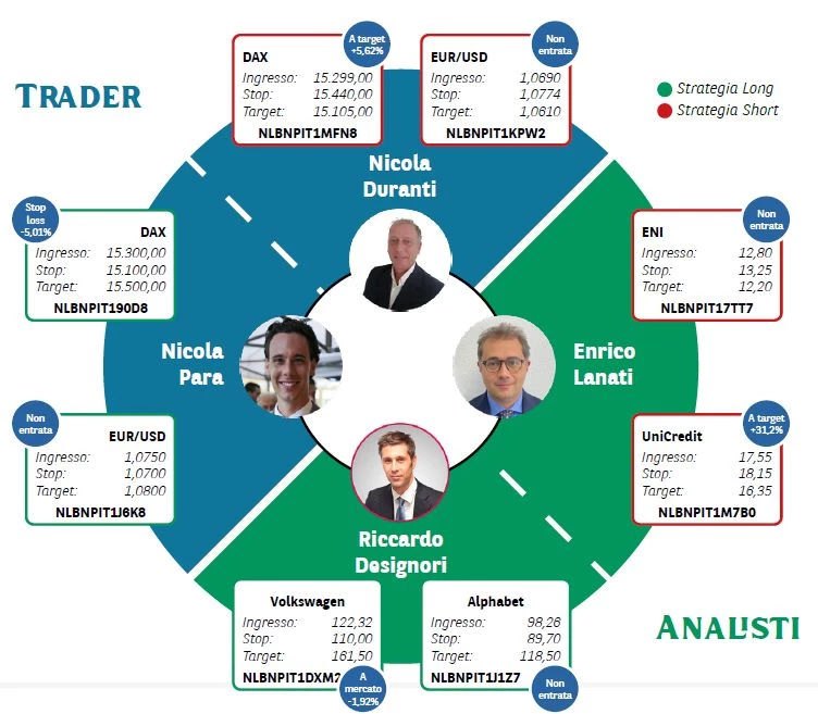 Borsa in Diretta è la newsletter giornaliera di BNP Paribas. Ogni lunedì non perderti l'appuntamento di Weekly FTSE MIB, pillola video in cui si analizza il principale indice di Borsa Italiana e si forniscono strategie operative per la settimana entrante. Inoltre, quotidianamente riceverai informazioni riguardanti notizie finanziarie e appuntamenti macroeconomici della giornata, analisi tecnica dei principali indici azionari FTSE MIB, DAX e S&P500 e aggiornamenti delle Trade Idea fatte dai migliori trader italiani durante House of Trading.