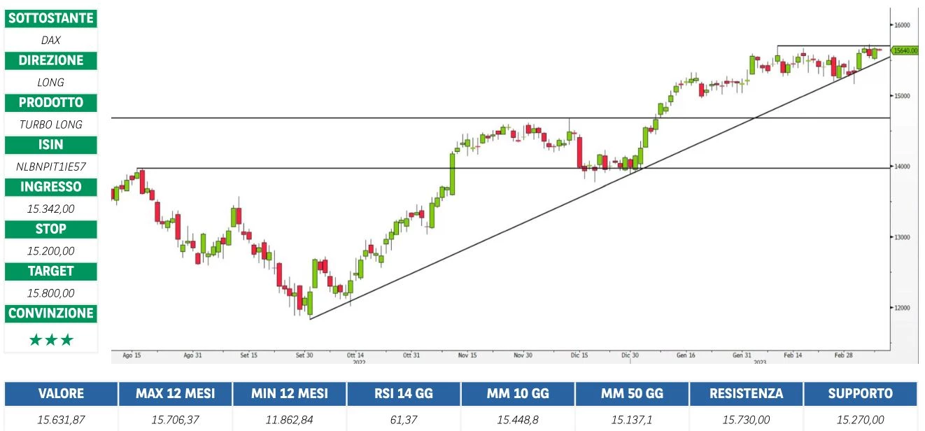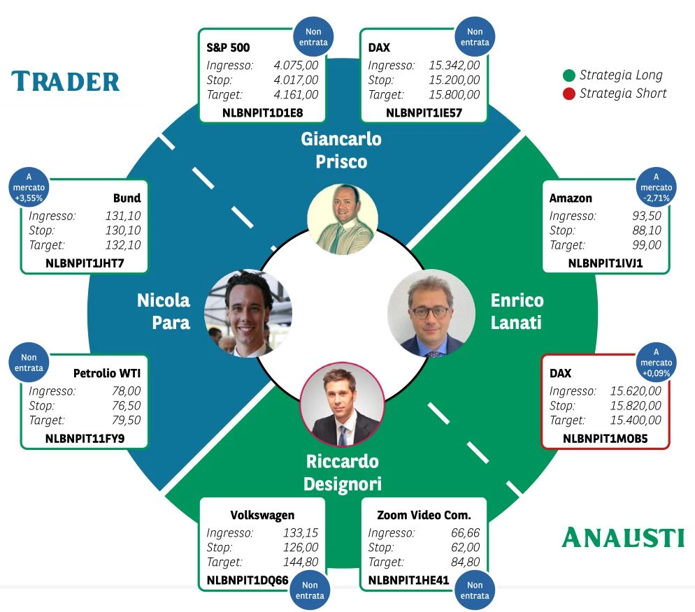 Borsa in Diretta è la newsletter giornaliera di BNP Paribas. Ogni lunedì non perderti l'appuntamento di Weekly FTSE MIB, pillola video in cui si analizza il principale indice di Borsa Italiana e si forniscono strategie operative per la settimana entrante. Inoltre, quotidianamente riceverai informazioni riguardanti notizie finanziarie e appuntamenti macroeconomici della giornata, analisi tecnica dei principali indici azionari FTSE MIB, DAX e S&P500 e aggiornamenti delle Trade Idea fatte dai migliori trader italiani durante House of Trading.