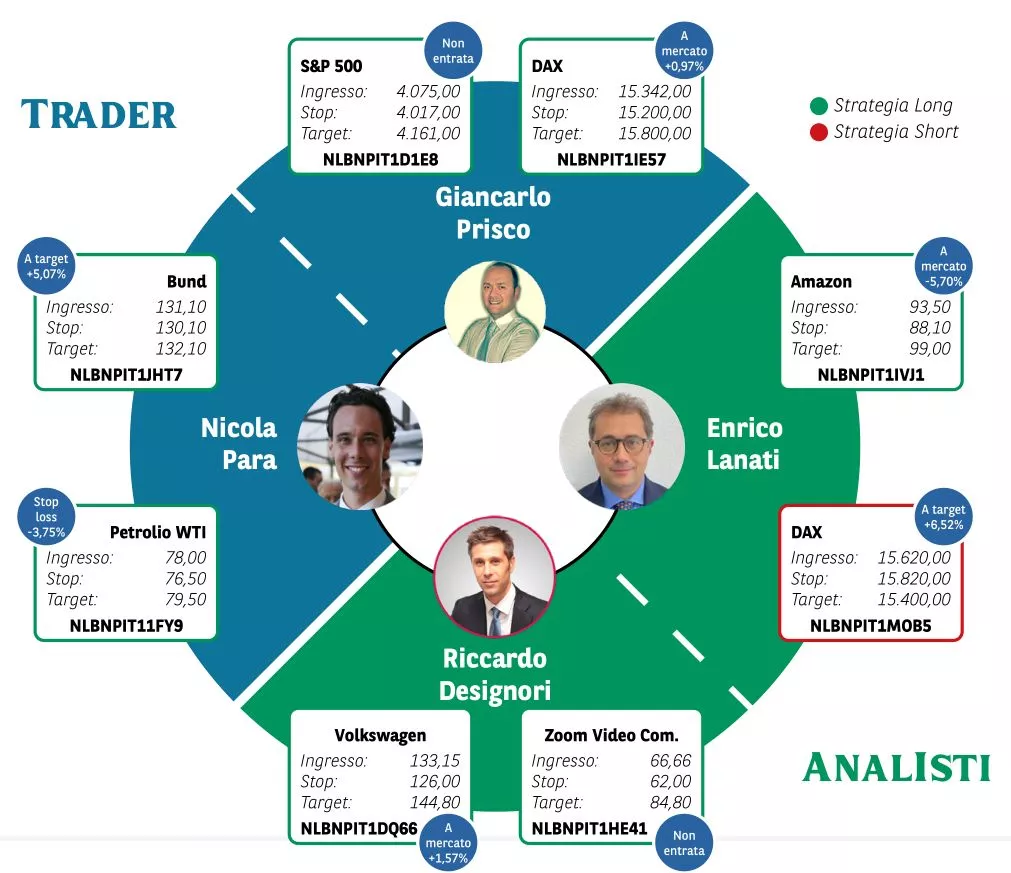 Borsa in Diretta è la newsletter giornaliera di BNP Paribas. Ogni lunedì non perderti l'appuntamento di Weekly FTSE MIB, pillola video in cui si analizza il principale indice di Borsa Italiana e si forniscono strategie operative per la settimana entrante. Inoltre, quotidianamente riceverai informazioni riguardanti notizie finanziarie e appuntamenti macroeconomici della giornata, analisi tecnica dei principali indici azionari FTSE MIB, DAX e S&P500 e aggiornamenti delle Trade Idea fatte dai migliori trader italiani durante House of Trading.
