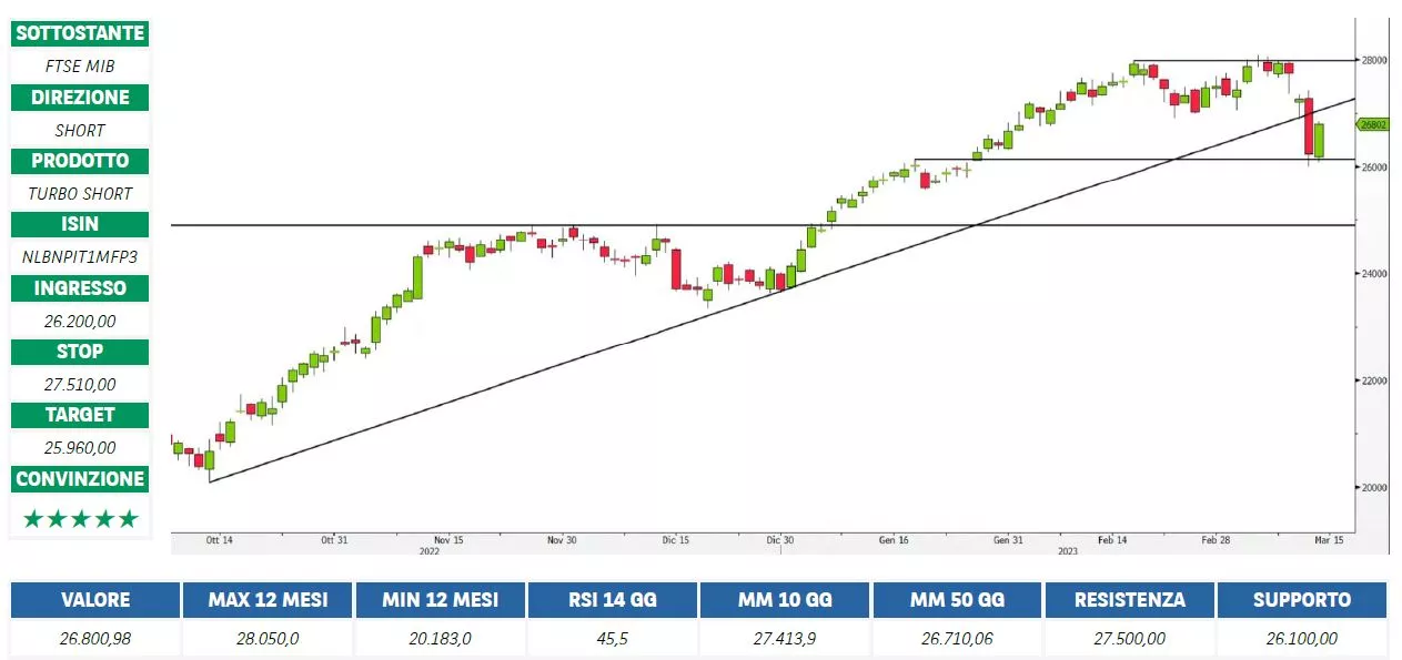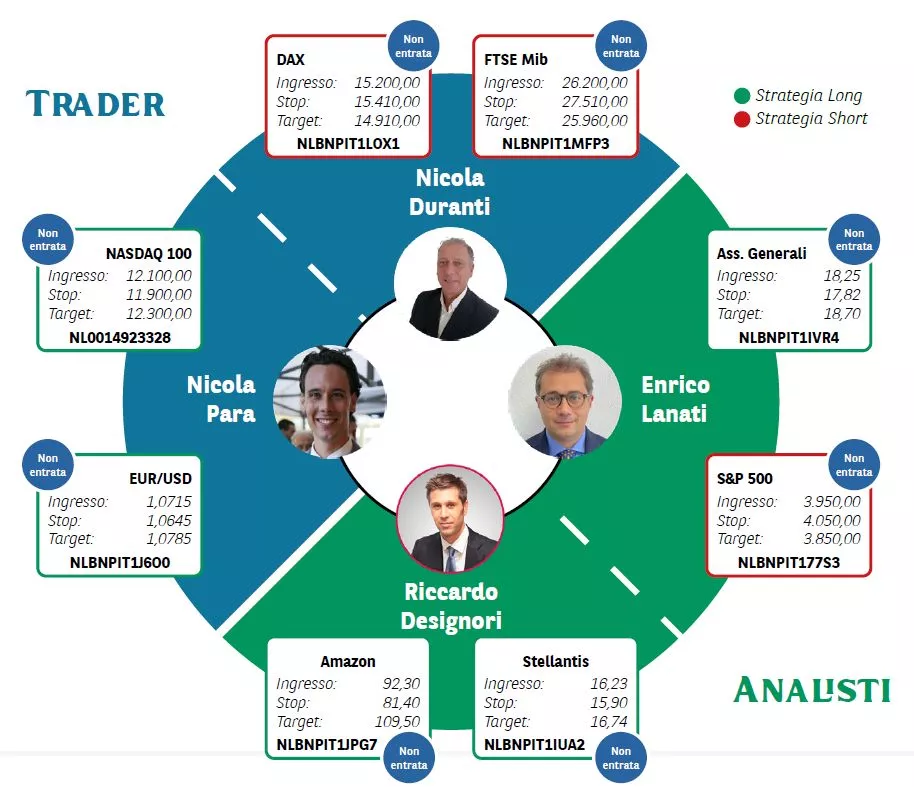 Borsa in Diretta è la newsletter giornaliera di BNP Paribas. Ogni lunedì non perderti l'appuntamento di Weekly FTSE MIB, pillola video in cui si analizza il principale indice di Borsa Italiana e si forniscono strategie operative per la settimana entrante. Inoltre, quotidianamente riceverai informazioni riguardanti notizie finanziarie e appuntamenti macroeconomici della giornata, analisi tecnica dei principali indici azionari FTSE MIB, DAX e S&P500 e aggiornamenti delle Trade Idea fatte dai migliori trader italiani durante House of Trading.