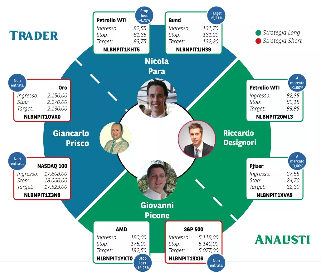 Borsa in Diretta è la newsletter giornaliera di BNP Paribas. Ogni lunedì non perderti l'appuntamento di Weekly FTSE MIB, pillola video in cui si analizza il principale indice di Borsa Italiana e si forniscono strategie operative per la settimana entrante. Inoltre, quotidianamente riceverai informazioni riguardanti notizie finanziarie e appuntamenti macroeconomici della giornata, analisi tecnica dei principali indici azionari FTSE MIB, DAX e S&P500 e aggiornamenti delle Trade Idea fatte dai migliori trader italiani durante House of Trading.