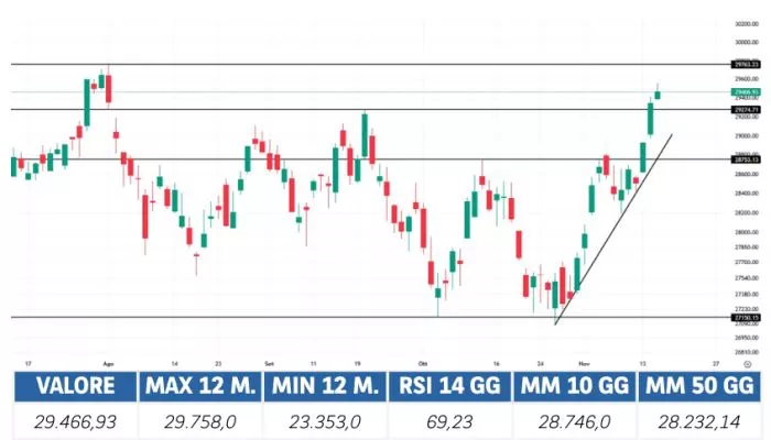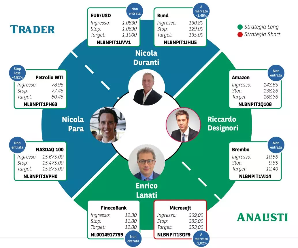 Borsa in Diretta è la newsletter giornaliera di BNP Paribas. Ogni lunedì non perderti l'appuntamento di Weekly FTSE MIB, pillola video in cui si analizza il principale indice di Borsa Italiana e si forniscono strategie operative per la settimana entrante. Inoltre, quotidianamente riceverai informazioni riguardanti notizie finanziarie e appuntamenti macroeconomici della giornata, analisi tecnica dei principali indici azionari FTSE MIB, DAX e S&P500 e aggiornamenti delle Trade Idea fatte dai migliori trader italiani durante House of Trading.