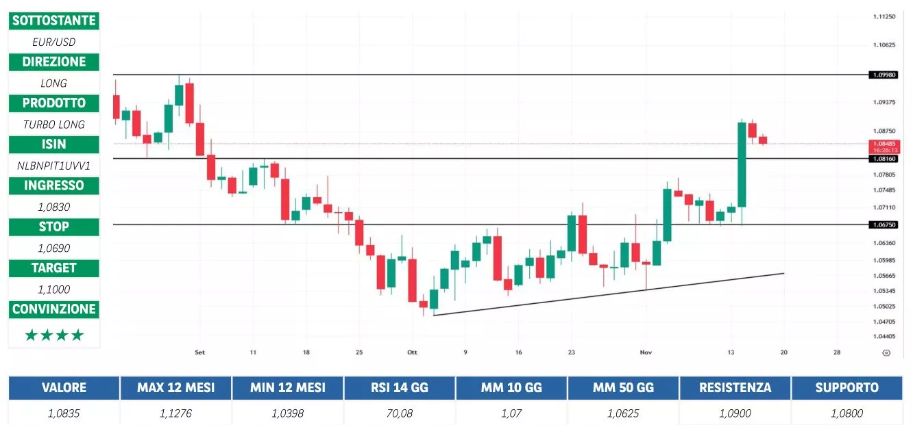 Prima di adottare una decisione di investimento al fine di comprendere appieno i potenziali rischi e benefici connessi alla decisione di investire negli strumenti finanziari quivi menzionati, si invita a leggere attentamente la relativa documentazione di offerta e/o quotazione e, in particolare, le sezioni dedicate ai fattori di rischio connessi all’investimento, ai relativi costi e al trattamento fiscale, e il relativo documento contenente le informazioni chiave (KID), ove disponibile. Tale documentazione è disponibile sul sito web investimenti.bnpparibas.it. L’investimento negli strumenti finanziari quivi menzionati può comportare il rischio di perdita totale o parziale del capitale inizialmente investito. Ove tali strumenti finanziari siano venduti prima della scadenza, l’investitore potrà incorrere anche in perdite in conto capitale. Nel caso in cui tali strumenti finanziari siano acquistati o venduti nel corso della loro durata, il rendimento potrà variare. La presente pubblicazione costituisce materiale pubblicitario e le informazioni in essa contenute hanno scopo meramente informativo e promozionale e non sono da intendersi in alcun modo come ricerca, sollecitazione o raccomandazione all’investimento, offerta al pubblico o consulenza in materia di investimenti. Le informazioni e i grafici a contenuto finanziario quivi riportati sono meramente indicativi e hanno scopo esclusivamente esemplificativo e non esaustivo. I rendimenti passati non sono indicativi, né sono garanzia, dei rendimenti futuri. È responsabilità dell’investitore effettuare un’accurata analisi di tutti i profili fiscali, legali e regolamentari (inclusi i fattori di rischio, tra i quali, i fattori di rischio legati ai tassi di interesse, i fattori di rischio di default e i fattori di rischio legati all’assenza di liquidità) connessi all’investimento negli strumenti finanziari quivi menzionati. BNP Paribas e/o altra società del gruppo BNP Paribas non potranno essere considerate responsabili delle conseguenze finanziarie o di altra natura derivanti dall’investimento in tali strumenti finanziari. Informazioni aggiornate sulla quotazione di questi ultimi sono disponibili sul sito web investimenti.bnpparibas.it. Le raccomandazioni di investimento quivi contenute non soddisfano i requisiti di legge relativi all’indipendenza della ricerca in materia di investimenti e non sono soggette ad alcun divieto di esecuzione di operazioni su strumenti finanziari prima della loro divulgazione.