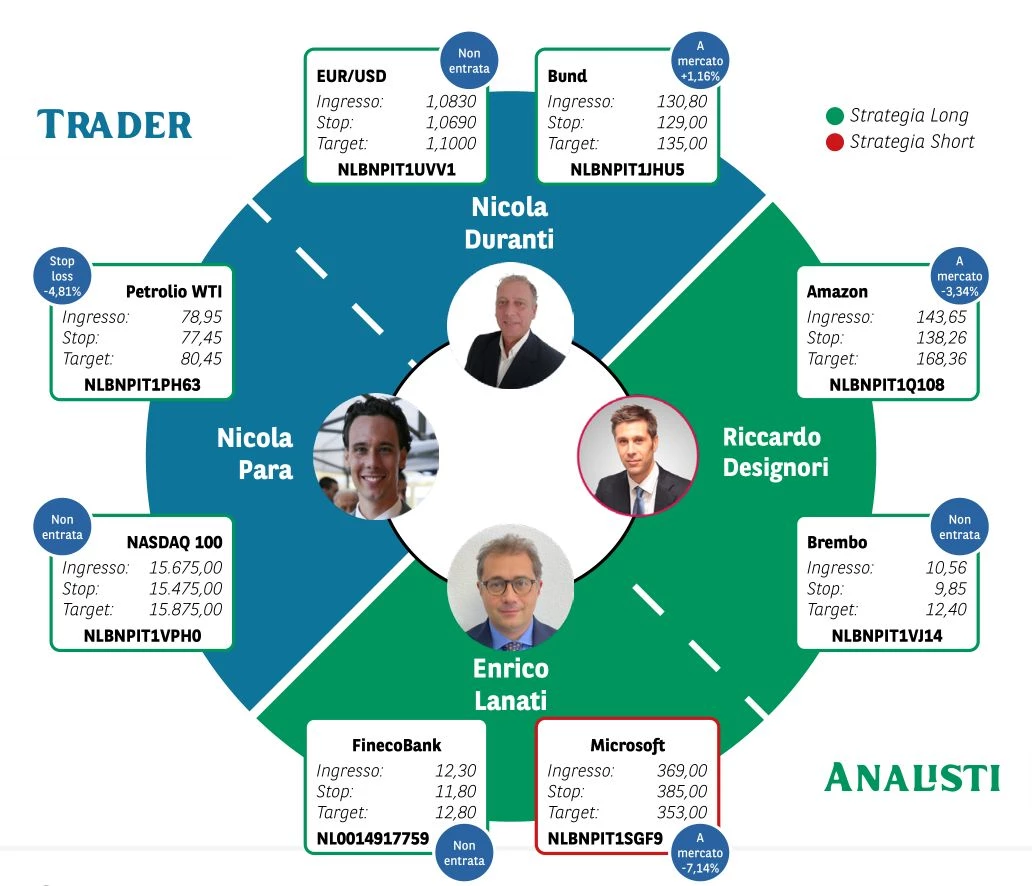 Borsa in Diretta è la newsletter giornaliera di BNP Paribas. Ogni lunedì non perderti l'appuntamento di Weekly FTSE MIB, pillola video in cui si analizza il principale indice di Borsa Italiana e si forniscono strategie operative per la settimana entrante. Inoltre, quotidianamente riceverai informazioni riguardanti notizie finanziarie e appuntamenti macroeconomici della giornata, analisi tecnica dei principali indici azionari FTSE MIB, DAX e S&P500 e aggiornamenti delle Trade Idea fatte dai migliori trader italiani durante House of Trading.