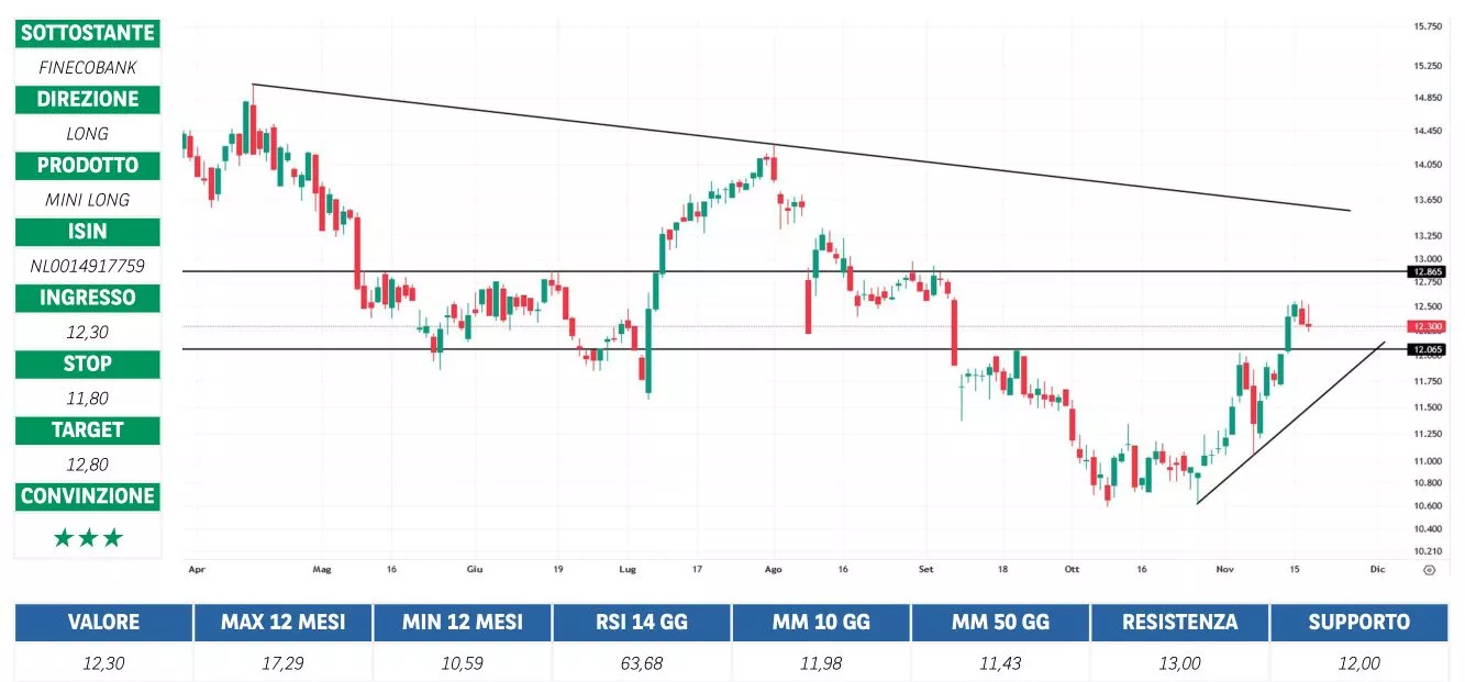 Prima di adottare una decisione di investimento al fine di comprendere appieno i potenziali rischi e benefici connessi alla decisione di investire negli strumenti finanziari quivi menzionati, si invita a leggere attentamente la relativa documentazione di offerta e/o quotazione e, in particolare, le sezioni dedicate ai fattori di rischio connessi all’investimento, ai relativi costi e al trattamento fiscale, e il relativo documento contenente le informazioni chiave (KID), ove disponibile. Tale documentazione è disponibile sul sito web investimenti.bnpparibas.it. L’investimento negli strumenti finanziari quivi menzionati può comportare il rischio di perdita totale o parziale del capitale inizialmente investito. Ove tali strumenti finanziari siano venduti prima della scadenza, l’investitore potrà incorrere anche in perdite in conto capitale. Nel caso in cui tali strumenti finanziari siano acquistati o venduti nel corso della loro durata, il rendimento potrà variare. La presente pubblicazione costituisce materiale pubblicitario e le informazioni in essa contenute hanno scopo meramente informativo e promozionale e non sono da intendersi in alcun modo come ricerca, sollecitazione o raccomandazione all’investimento, offerta al pubblico o consulenza in materia di investimenti. Le informazioni e i grafici a contenuto finanziario quivi riportati sono meramente indicativi e hanno scopo esclusivamente esemplificativo e non esaustivo. I rendimenti passati non sono indicativi, né sono garanzia, dei rendimenti futuri. È responsabilità dell’investitore effettuare un’accurata analisi di tutti i profili fiscali, legali e regolamentari (inclusi i fattori di rischio, tra i quali, i fattori di rischio legati ai tassi di interesse, i fattori di rischio di default e i fattori di rischio legati all’assenza di liquidità) connessi all’investimento negli strumenti finanziari quivi menzionati. BNP Paribas e/o altra società del gruppo BNP Paribas non potranno essere considerate responsabili delle conseguenze finanziarie o di altra natura derivanti dall’investimento in tali strumenti finanziari. Informazioni aggiornate sulla quotazione di questi ultimi sono disponibili sul sito web investimenti.bnpparibas.it. Le raccomandazioni di investimento quivi contenute non soddisfano i requisiti di legge relativi all’indipendenza della ricerca in materia di investimenti e non sono soggette ad alcun divieto di esecuzione di operazioni su strumenti finanziari prima della loro divulgazione.