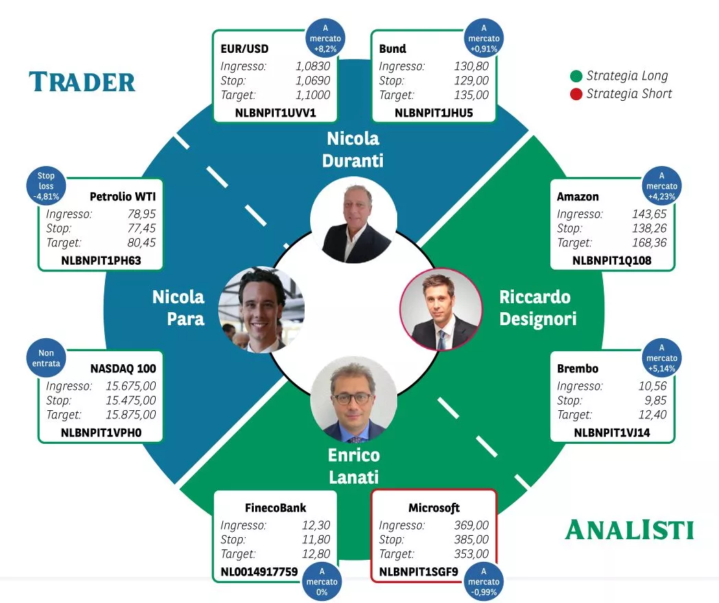Borsa in Diretta è la newsletter giornaliera di BNP Paribas. Ogni lunedì non perderti l'appuntamento di Weekly FTSE MIB, pillola video in cui si analizza il principale indice di Borsa Italiana e si forniscono strategie operative per la settimana entrante. Inoltre, quotidianamente riceverai informazioni riguardanti notizie finanziarie e appuntamenti macroeconomici della giornata, analisi tecnica dei principali indici azionari FTSE MIB, DAX e S&P500 e aggiornamenti delle Trade Idea fatte dai migliori trader italiani durante House of Trading.