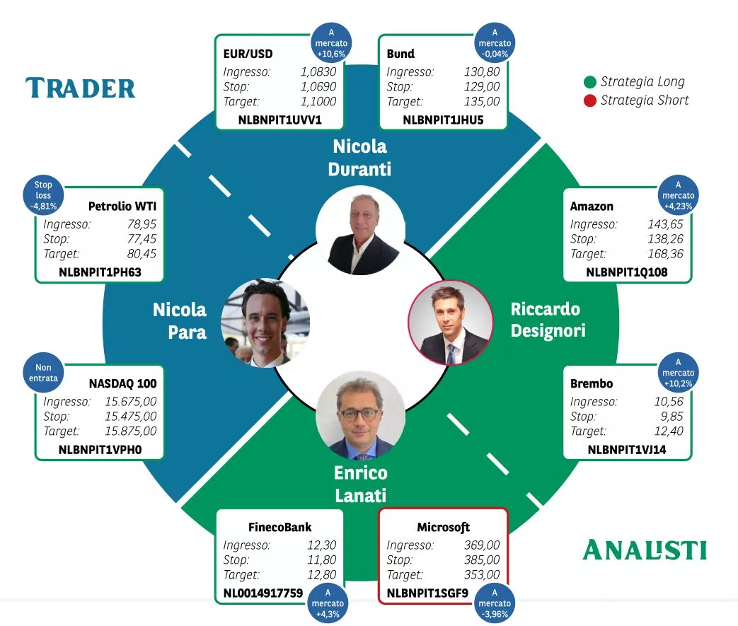 Borsa in Diretta è la newsletter giornaliera di BNP Paribas. Ogni lunedì non perderti l'appuntamento di Weekly FTSE MIB, pillola video in cui si analizza il principale indice di Borsa Italiana e si forniscono strategie operative per la settimana entrante. Inoltre, quotidianamente riceverai informazioni riguardanti notizie finanziarie e appuntamenti macroeconomici della giornata, analisi tecnica dei principali indici azionari FTSE MIB, DAX e S&P500 e aggiornamenti delle Trade Idea fatte dai migliori trader italiani durante House of Trading.