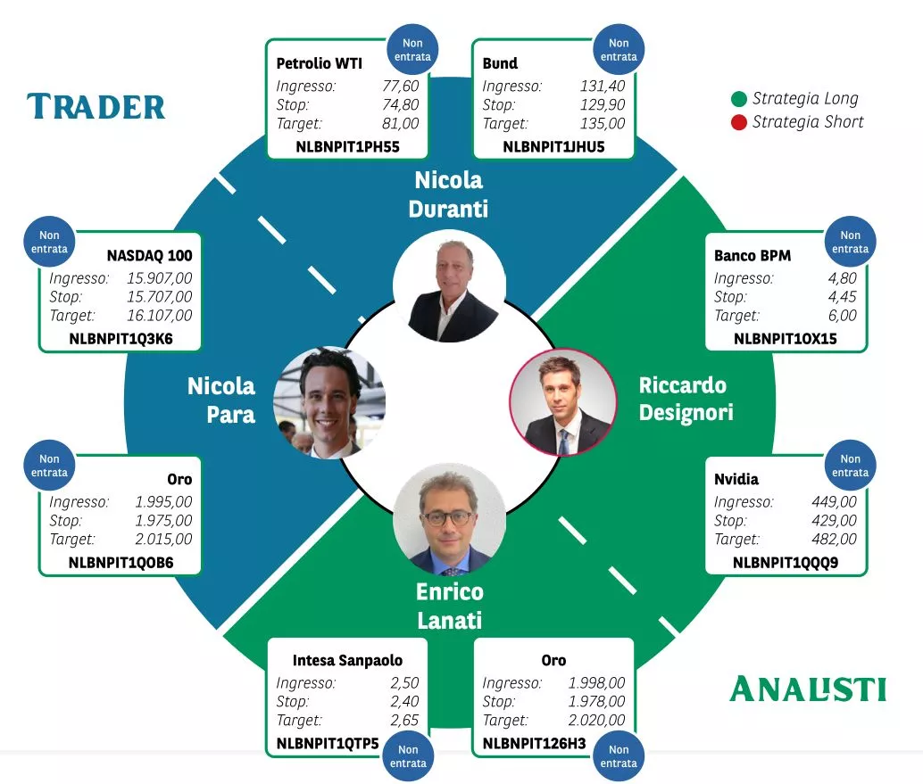 Borsa in Diretta è la newsletter giornaliera di BNP Paribas. Ogni lunedì non perderti l'appuntamento di Weekly FTSE MIB, pillola video in cui si analizza il principale indice di Borsa Italiana e si forniscono strategie operative per la settimana entrante. Inoltre, quotidianamente riceverai informazioni riguardanti notizie finanziarie e appuntamenti macroeconomici della giornata, analisi tecnica dei principali indici azionari FTSE MIB, DAX e S&P500 e aggiornamenti delle Trade Idea fatte dai migliori trader italiani durante House of Trading.
