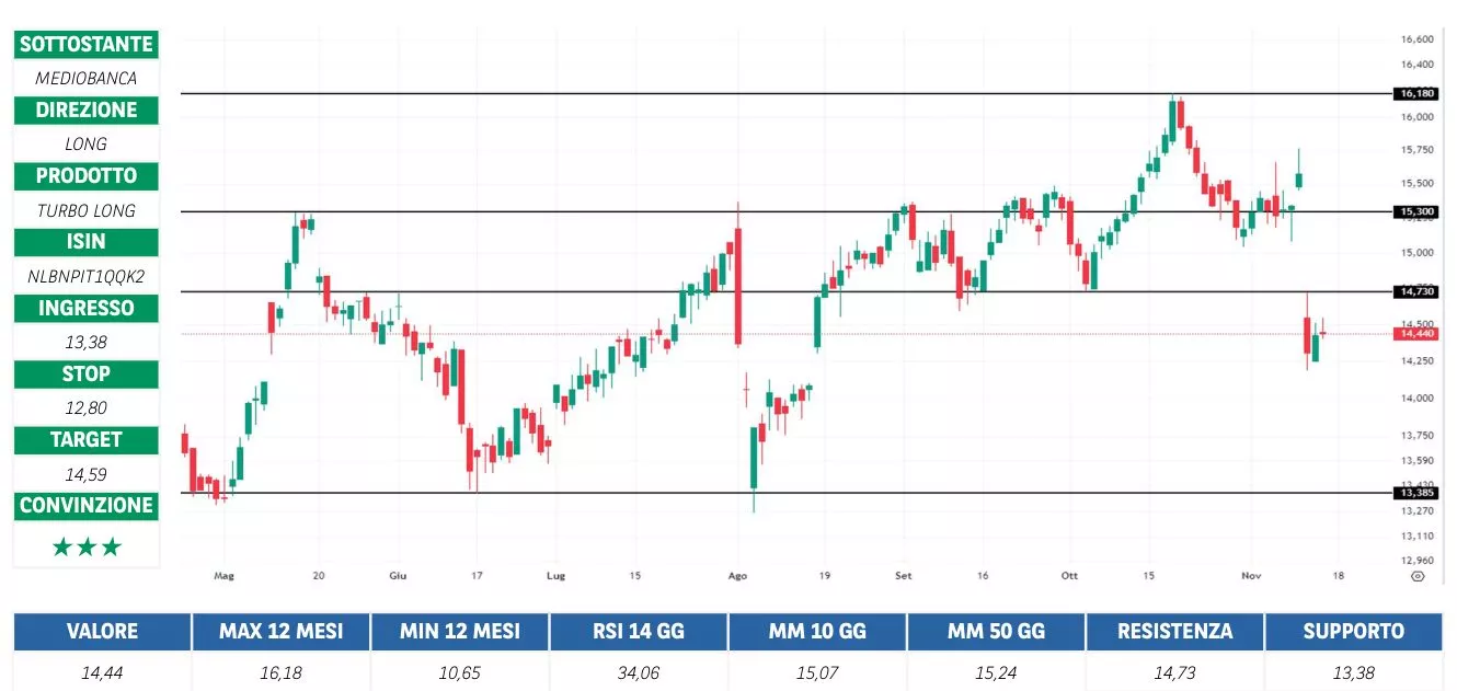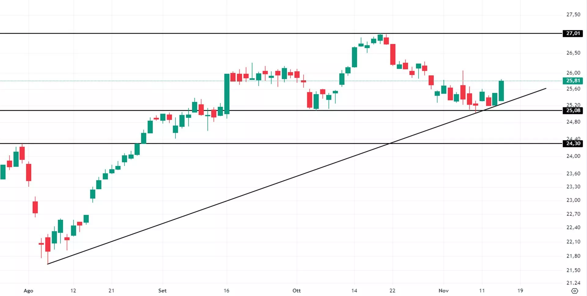 Prima di adottare una decisione di investimento al fine di comprendere appieno i potenziali rischi e benefici connessi alla decisione di investire negli strumenti finanziari quivi menzionati, si invita a leggere attentamente la relativa documentazione di offerta e/o quotazione e, in particolare, le sezioni dedicate ai fattori di rischio connessi all’investimento, ai relativi costi e al trattamento fiscale, e il relativo documento contenente le informazioni chiave (KID), ove disponibile. Tale documentazione è disponibile sul sito web investimenti.bnpparibas.it. L’investimento negli strumenti finanziari quivi menzionati può comportare il rischio di perdita totale o parziale del capitale inizialmente investito. Ove tali strumenti finanziari siano venduti prima della scadenza, l’investitore potrà incorrere anche in perdite in conto capitale. Nel caso in cui tali strumenti finanziari siano acquistati o venduti nel corso della loro durata, il rendimento potrà variare. La presente pubblicazione costituisce materiale pubblicitario e le informazioni in essa contenute hanno scopo meramente informativo e promozionale e non sono da intendersi in alcun modo come ricerca, sollecitazione o raccomandazione all’investimento, offerta al pubblico o consulenza in materia di investimenti. Le informazioni e i grafici a contenuto finanziario quivi riportati sono meramente indicativi e hanno scopo esclusivamente esemplificativo e non esaustivo. I rendimenti passati non sono indicativi, né sono garanzia, dei rendimenti futuri. È responsabilità dell’investitore effettuare un’accurata analisi di tutti i profili fiscali, legali e regolamentari (inclusi i fattori di rischio, tra i quali, i fattori di rischio legati ai tassi di interesse, i fattori di rischio di default e i fattori di rischio legati all’assenza di liquidità) connessi all’investimento negli strumenti finanziari quivi menzionati. BNP Paribas e/o altra società del gruppo BNP Paribas non potranno essere considerate responsabili delle conseguenze finanziarie o di altra natura derivanti dall’investimento in tali strumenti finanziari. Informazioni aggiornate sulla quotazione di questi ultimi sono disponibili sul sito web investimenti.bnpparibas.it. Le raccomandazioni di investimento quivi contenute non soddisfano i requisiti di legge relativi all’indipendenza della ricerca in materia di investimenti e non sono soggette ad alcun divieto di esecuzione di operazioni su strumenti finanziari prima della loro divulgazione.