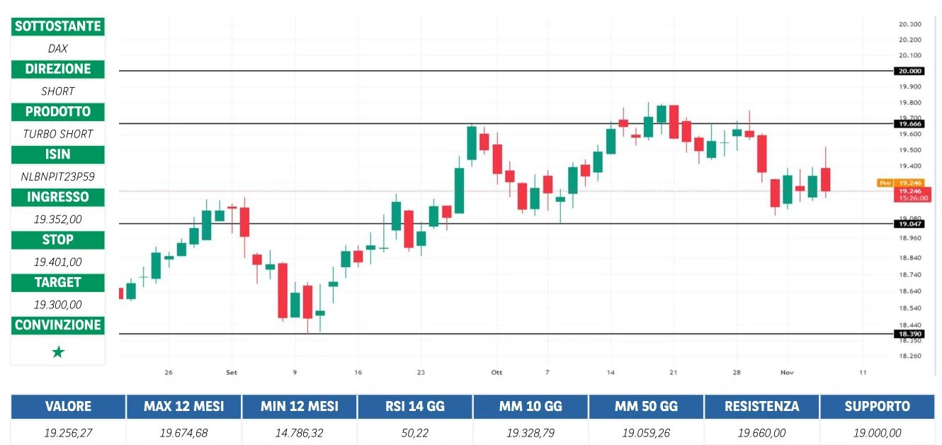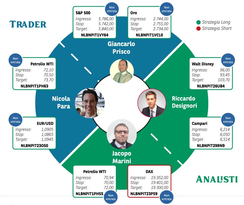 Borsa in Diretta è la newsletter giornaliera di BNP Paribas. Ogni lunedì non perderti l'appuntamento di Weekly FTSE MIB, pillola video in cui si analizza il principale indice di Borsa Italiana e si forniscono strategie operative per la settimana entrante. Inoltre, quotidianamente riceverai informazioni riguardanti notizie finanziarie e appuntamenti macroeconomici della giornata, analisi tecnica dei principali indici azionari FTSE MIB, DAX e S&P500 e aggiornamenti delle Trade Idea fatte dai migliori trader italiani durante House of Trading.