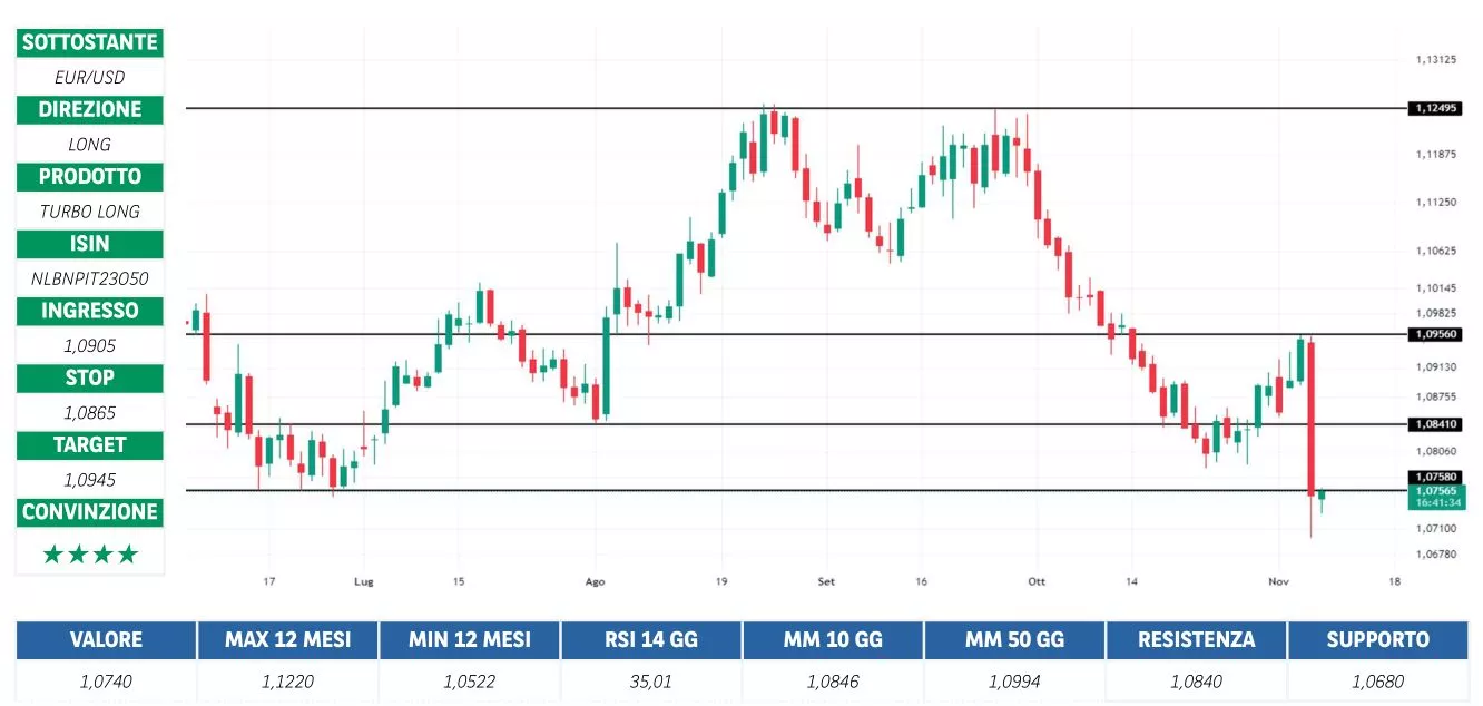 Prima di adottare una decisione di investimento al fine di comprendere appieno i potenziali rischi e benefici connessi alla decisione di investire negli strumenti finanziari quivi menzionati, si invita a leggere attentamente la relativa documentazione di offerta e/o quotazione e, in particolare, le sezioni dedicate ai fattori di rischio connessi all’investimento, ai relativi costi e al trattamento fiscale, e il relativo documento contenente le informazioni chiave (KID), ove disponibile. Tale documentazione è disponibile sul sito web investimenti.bnpparibas.it. L’investimento negli strumenti finanziari quivi menzionati può comportare il rischio di perdita totale o parziale del capitale inizialmente investito. Ove tali strumenti finanziari siano venduti prima della scadenza, l’investitore potrà incorrere anche in perdite in conto capitale. Nel caso in cui tali strumenti finanziari siano acquistati o venduti nel corso della loro durata, il rendimento potrà variare. La presente pubblicazione costituisce materiale pubblicitario e le informazioni in essa contenute hanno scopo meramente informativo e promozionale e non sono da intendersi in alcun modo come ricerca, sollecitazione o raccomandazione all’investimento, offerta al pubblico o consulenza in materia di investimenti. Le informazioni e i grafici a contenuto finanziario quivi riportati sono meramente indicativi e hanno scopo esclusivamente esemplificativo e non esaustivo. I rendimenti passati non sono indicativi, né sono garanzia, dei rendimenti futuri. È responsabilità dell’investitore effettuare un’accurata analisi di tutti i profili fiscali, legali e regolamentari (inclusi i fattori di rischio, tra i quali, i fattori di rischio legati ai tassi di interesse, i fattori di rischio di default e i fattori di rischio legati all’assenza di liquidità) connessi all’investimento negli strumenti finanziari quivi menzionati. BNP Paribas e/o altra società del gruppo BNP Paribas non potranno essere considerate responsabili delle conseguenze finanziarie o di altra natura derivanti dall’investimento in tali strumenti finanziari. Informazioni aggiornate sulla quotazione di questi ultimi sono disponibili sul sito web investimenti.bnpparibas.it. Le raccomandazioni di investimento quivi contenute non soddisfano i requisiti di legge relativi all’indipendenza della ricerca in materia di investimenti e non sono soggette ad alcun divieto di esecuzione di operazioni su strumenti finanziari prima della loro divulgazione.