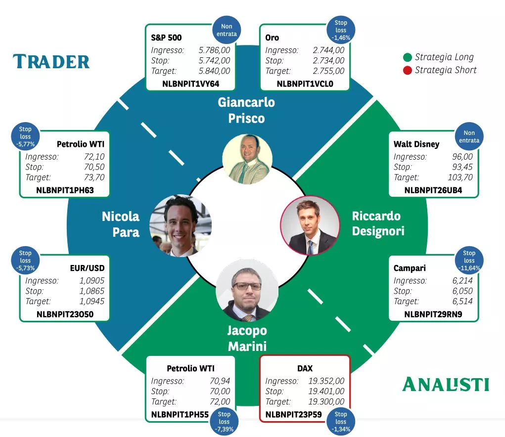 Borsa in Diretta è la newsletter giornaliera di BNP Paribas. Ogni lunedì non perderti l'appuntamento di Weekly FTSE MIB, pillola video in cui si analizza il principale indice di Borsa Italiana e si forniscono strategie operative per la settimana entrante. Inoltre, quotidianamente riceverai informazioni riguardanti notizie finanziarie e appuntamenti macroeconomici della giornata, analisi tecnica dei principali indici azionari FTSE MIB, DAX e S&P500 e aggiornamenti delle Trade Idea fatte dai migliori trader italiani durante House of Trading.