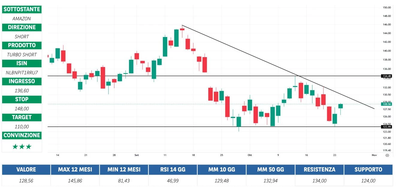 Prima di adottare una decisione di investimento al fine di comprendere appieno i potenziali rischi e benefici connessi alla decisione di investire negli strumenti finanziari quivi menzionati, si invita a leggere attentamente la relativa documentazione di offerta e/o quotazione e, in particolare, le sezioni dedicate ai fattori di rischio connessi all’investimento, ai relativi costi e al trattamento fiscale, e il relativo documento contenente le informazioni chiave (KID), ove disponibile. Tale documentazione è disponibile sul sito web investimenti.bnpparibas.it. L’investimento negli strumenti finanziari quivi menzionati può comportare il rischio di perdita totale o parziale del capitale inizialmente investito. Ove tali strumenti finanziari siano venduti prima della scadenza, l’investitore potrà incorrere anche in perdite in conto capitale. Nel caso in cui tali strumenti finanziari siano acquistati o venduti nel corso della loro durata, il rendimento potrà variare. La presente pubblicazione costituisce materiale pubblicitario e le informazioni in essa contenute hanno scopo meramente informativo e promozionale e non sono da intendersi in alcun modo come ricerca, sollecitazione o raccomandazione all’investimento, offerta al pubblico o consulenza in materia di investimenti. Le informazioni e i grafici a contenuto finanziario quivi riportati sono meramente indicativi e hanno scopo esclusivamente esemplificativo e non esaustivo. I rendimenti passati non sono indicativi, né sono garanzia, dei rendimenti futuri. È responsabilità dell’investitore effettuare un’accurata analisi di tutti i profili fiscali, legali e regolamentari (inclusi i fattori di rischio, tra i quali, i fattori di rischio legati ai tassi di interesse, i fattori di rischio di default e i fattori di rischio legati all’assenza di liquidità) connessi all’investimento negli strumenti finanziari quivi menzionati. BNP Paribas e/o altra società del gruppo BNP Paribas non potranno essere considerate responsabili delle conseguenze finanziarie o di altra natura derivanti dall’investimento in tali strumenti finanziari. Informazioni aggiornate sulla quotazione di questi ultimi sono disponibili sul sito web investimenti.bnpparibas.it. Le raccomandazioni di investimento quivi contenute non soddisfano i requisiti di legge relativi all’indipendenza della ricerca in materia di investimenti e non sono soggette ad alcun divieto di esecuzione di operazioni su strumenti finanziari prima della loro divulgazione.