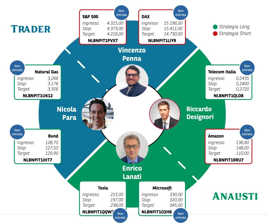 Borsa in Diretta è la newsletter giornaliera di BNP Paribas. Ogni lunedì non perderti l'appuntamento di Weekly FTSE MIB, pillola video in cui si analizza il principale indice di Borsa Italiana e si forniscono strategie operative per la settimana entrante. Inoltre, quotidianamente riceverai informazioni riguardanti notizie finanziarie e appuntamenti macroeconomici della giornata, analisi tecnica dei principali indici azionari FTSE MIB, DAX e S&P500 e aggiornamenti delle Trade Idea fatte dai migliori trader italiani durante House of Trading.
