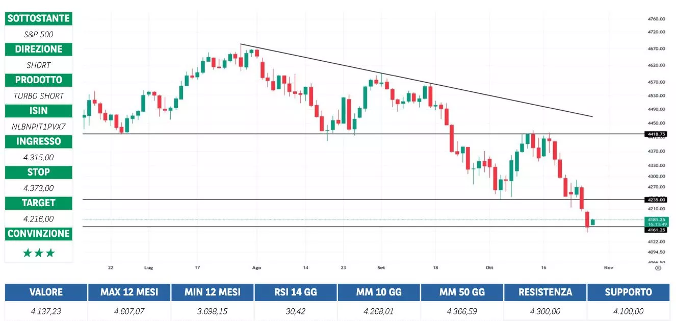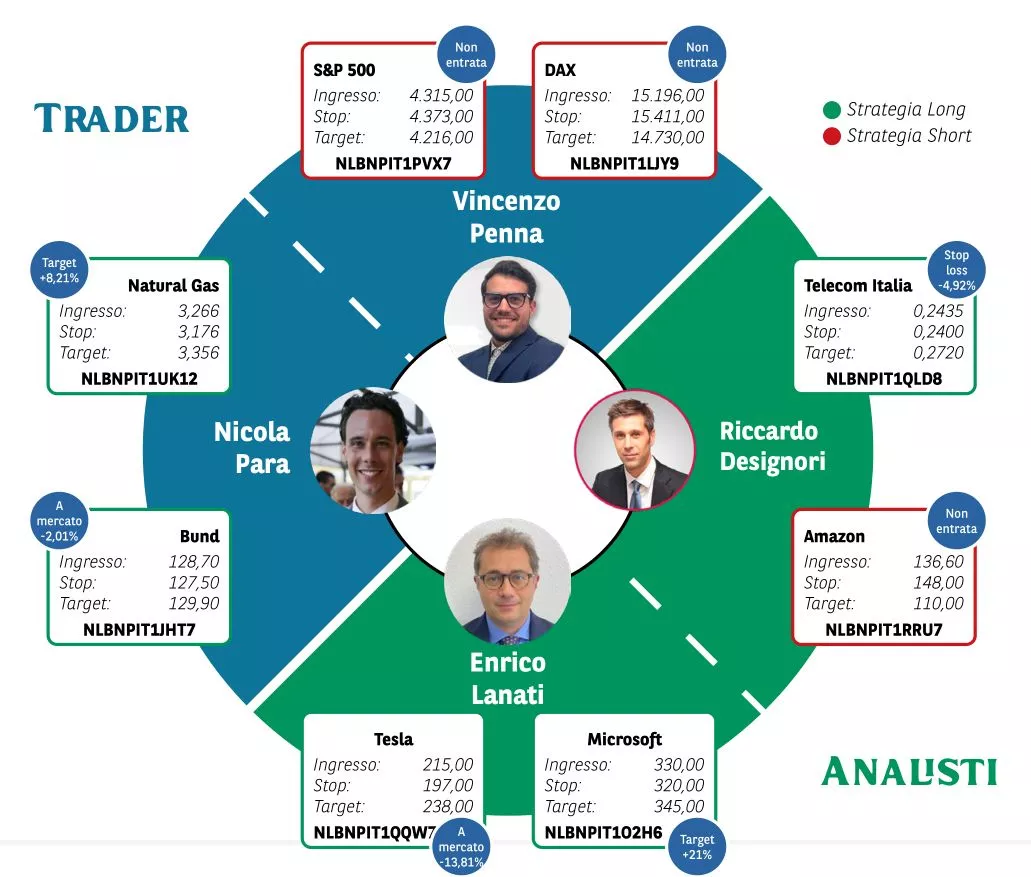 Borsa in Diretta è la newsletter giornaliera di BNP Paribas. Ogni lunedì non perderti l'appuntamento di Weekly FTSE MIB, pillola video in cui si analizza il principale indice di Borsa Italiana e si forniscono strategie operative per la settimana entrante. Inoltre, quotidianamente riceverai informazioni riguardanti notizie finanziarie e appuntamenti macroeconomici della giornata, analisi tecnica dei principali indici azionari FTSE MIB, DAX e S&P500 e aggiornamenti delle Trade Idea fatte dai migliori trader italiani durante House of Trading.