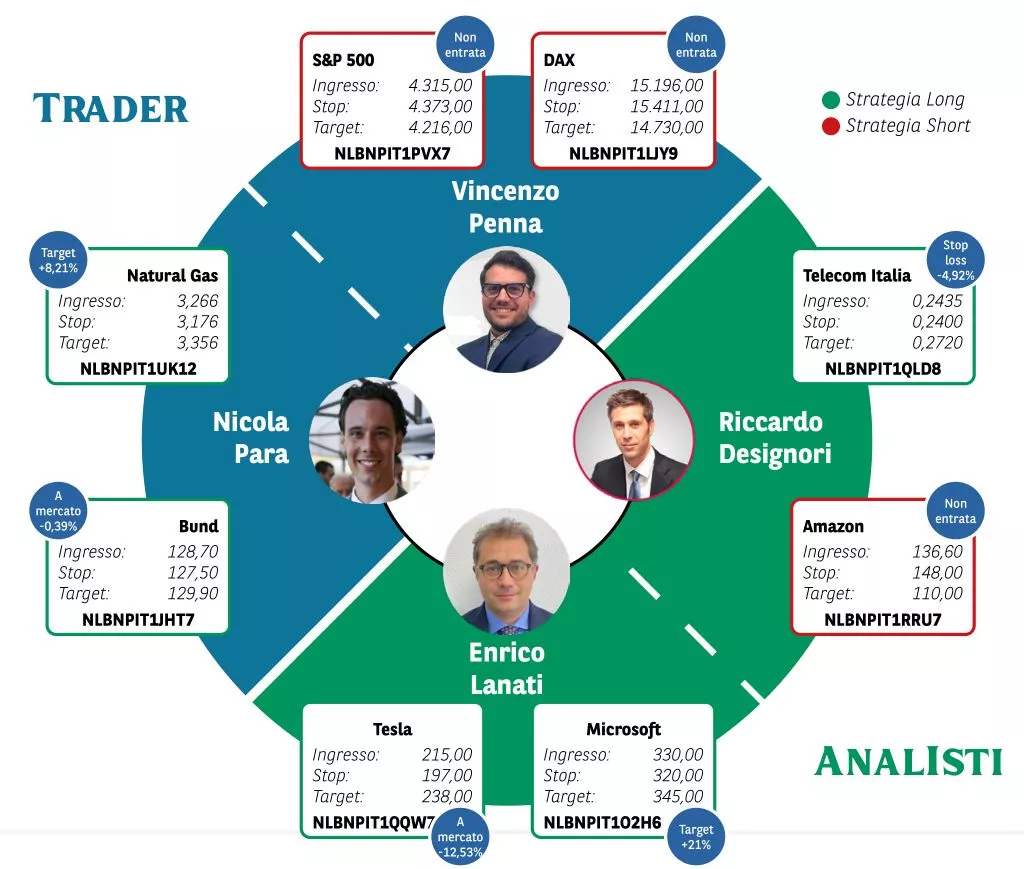 Borsa in Diretta è la newsletter giornaliera di BNP Paribas. Ogni lunedì non perderti l'appuntamento di Weekly FTSE MIB, pillola video in cui si analizza il principale indice di Borsa Italiana e si forniscono strategie operative per la settimana entrante. Inoltre, quotidianamente riceverai informazioni riguardanti notizie finanziarie e appuntamenti macroeconomici della giornata, analisi tecnica dei principali indici azionari FTSE MIB, DAX e S&P500 e aggiornamenti delle Trade Idea fatte dai migliori trader italiani durante House of Trading.