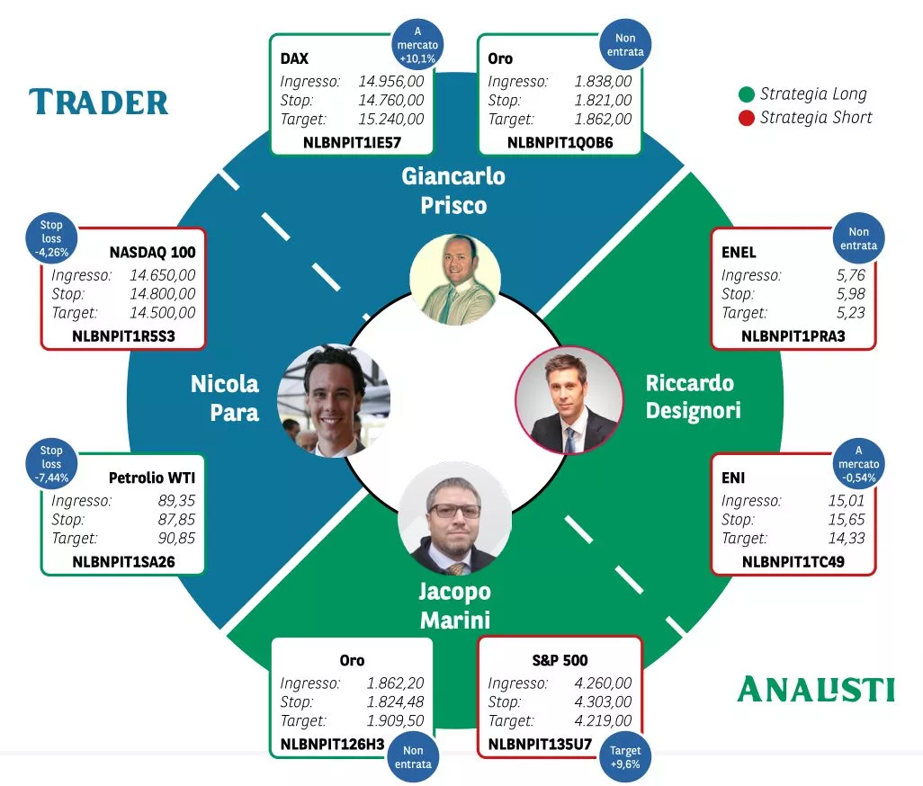 Borsa in Diretta è la newsletter giornaliera di BNP Paribas. Ogni lunedì non perderti l'appuntamento di Weekly FTSE MIB, pillola video in cui si analizza il principale indice di Borsa Italiana e si forniscono strategie operative per la settimana entrante. Inoltre, quotidianamente riceverai informazioni riguardanti notizie finanziarie e appuntamenti macroeconomici della giornata, analisi tecnica dei principali indici azionari FTSE MIB, DAX e S&P500 e aggiornamenti delle Trade Idea fatte dai migliori trader italiani durante House of Trading.