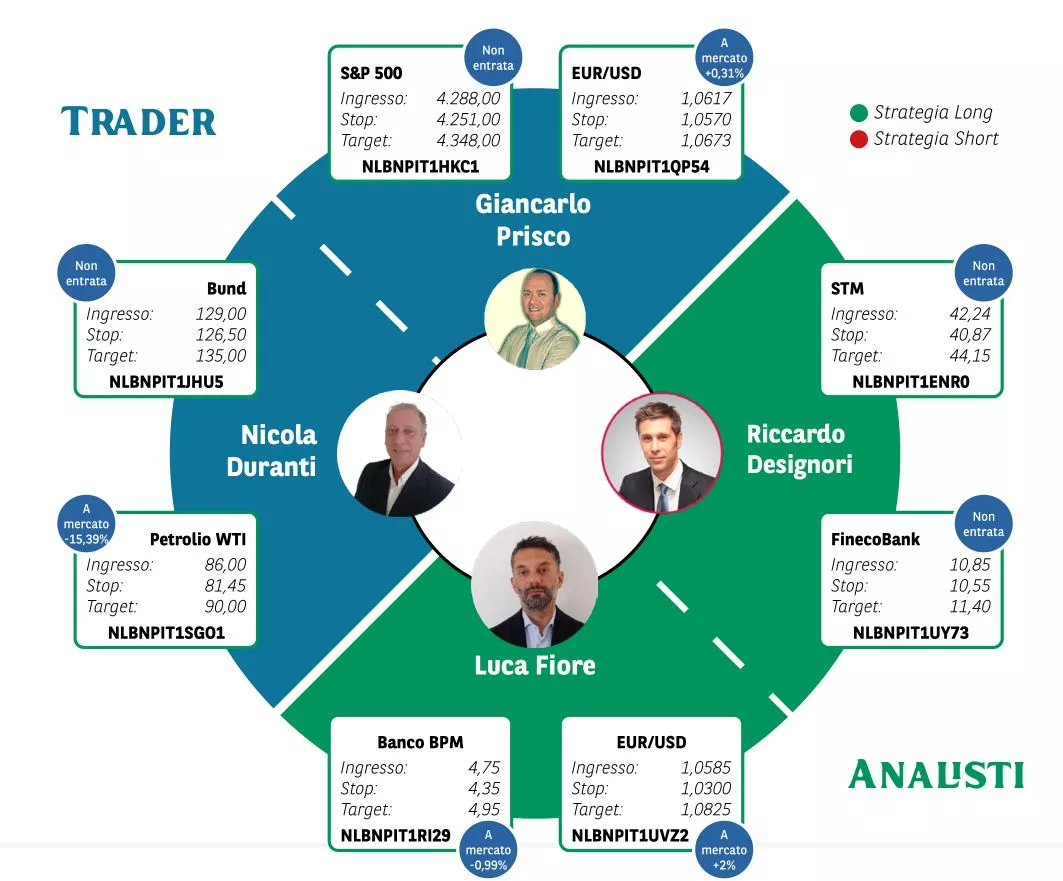 Borsa in Diretta è la newsletter giornaliera di BNP Paribas. Ogni lunedì non perderti l'appuntamento di Weekly FTSE MIB, pillola video in cui si analizza il principale indice di Borsa Italiana e si forniscono strategie operative per la settimana entrante. Inoltre, quotidianamente riceverai informazioni riguardanti notizie finanziarie e appuntamenti macroeconomici della giornata, analisi tecnica dei principali indici azionari FTSE MIB, DAX e S&P500 e aggiornamenti delle Trade Idea fatte dai migliori trader italiani durante House of Trading.