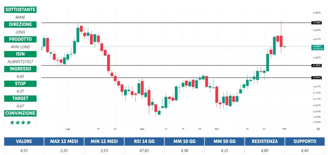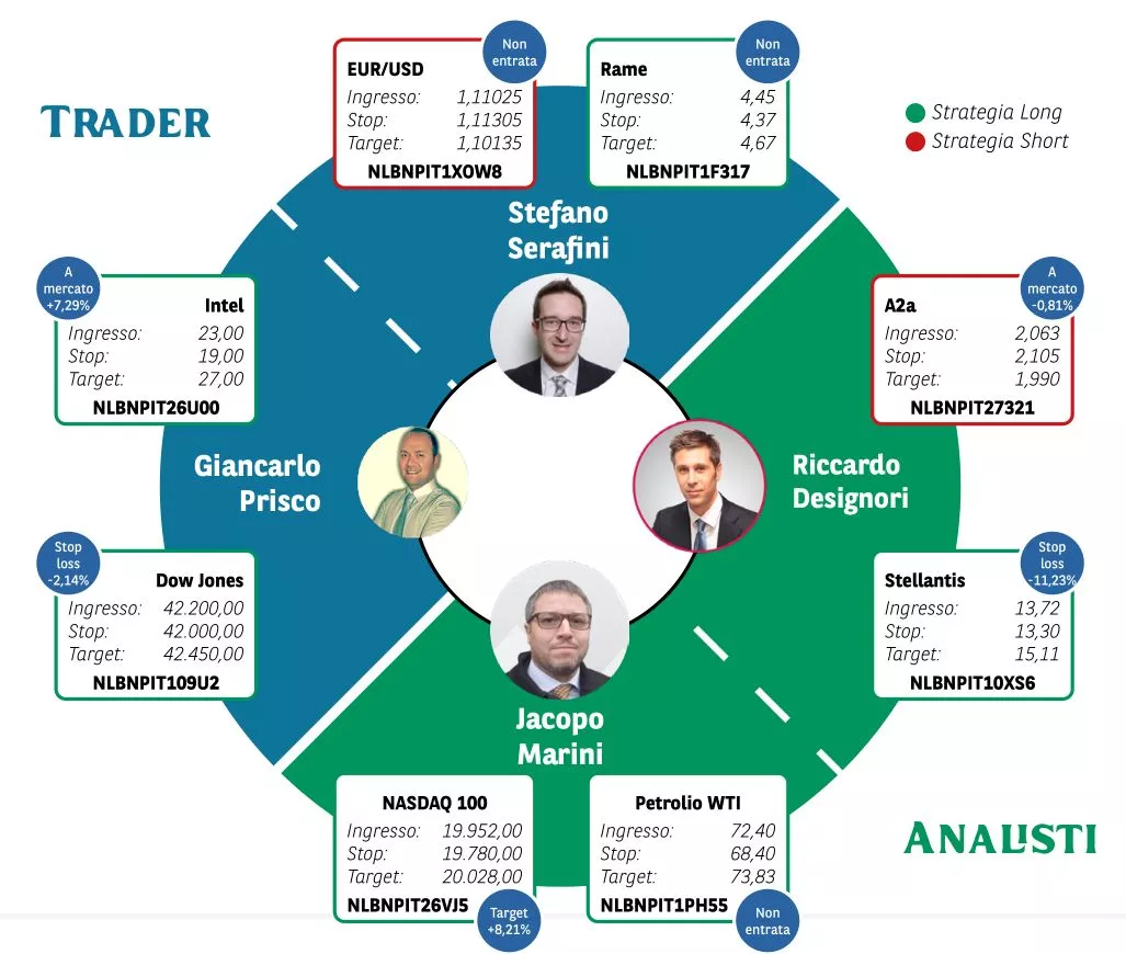 Prima di adottare una decisione di investimento al fine di comprendere appieno i potenziali rischi e benefici connessi alla decisione di investire negli strumenti finanziari quivi menzionati, si invita a leggere attentamente la relativa documentazione di offerta e/o quotazione e, in particolare, le sezioni dedicate ai fattori di rischio connessi all’investimento, ai relativi costi e al trattamento fiscale, e il relativo documento contenente le informazioni chiave (KID), ove disponibile. Tale documentazione è disponibile sul sito web investimenti.bnpparibas.it. L’investimento negli strumenti finanziari quivi menzionati può comportare il rischio di perdita totale o parziale del capitale inizialmente investito. Ove tali strumenti finanziari siano venduti prima della scadenza, l’investitore potrà incorrere anche in perdite in conto capitale. Nel caso in cui tali strumenti finanziari siano acquistati o venduti nel corso della loro durata, il rendimento potrà variare. La presente pubblicazione costituisce materiale pubblicitario e le informazioni in essa contenute hanno scopo meramente informativo e promozionale e non sono da intendersi in alcun modo come ricerca, sollecitazione o raccomandazione all’investimento, offerta al pubblico o consulenza in materia di investimenti. Le informazioni e i grafici a contenuto finanziario quivi riportati sono meramente indicativi e hanno scopo esclusivamente esemplificativo e non esaustivo. I rendimenti passati non sono indicativi, né sono garanzia, dei rendimenti futuri. È responsabilità dell’investitore effettuare un’accurata analisi di tutti i profili fiscali, legali e regolamentari (inclusi i fattori di rischio, tra i quali, i fattori di rischio legati ai tassi di interesse, i fattori di rischio di default e i fattori di rischio legati all’assenza di liquidità) connessi all’investimento negli strumenti finanziari quivi menzionati. BNP Paribas e/o altra società del gruppo BNP Paribas non potranno essere considerate responsabili delle conseguenze finanziarie o di altra natura derivanti dall’investimento in tali strumenti finanziari. Informazioni aggiornate sulla quotazione di questi ultimi sono disponibili sul sito web investimenti.bnpparibas.it. Le raccomandazioni di investimento quivi contenute non soddisfano i requisiti di legge relativi all’indipendenza della ricerca in materia di investimenti e non sono soggette ad alcun divieto di esecuzione di operazioni su strumenti finanziari prima della loro divulgazione.