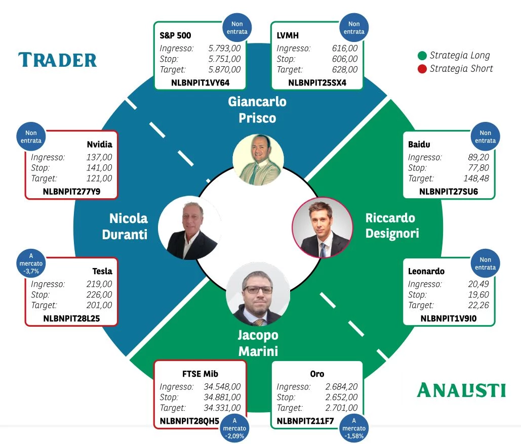 Borsa in Diretta è la newsletter giornaliera di BNP Paribas. Ogni lunedì non perderti l'appuntamento di Weekly FTSE MIB, pillola video in cui si analizza il principale indice di Borsa Italiana e si forniscono strategie operative per la settimana entrante. Inoltre, quotidianamente riceverai informazioni riguardanti notizie finanziarie e appuntamenti macroeconomici della giornata, analisi tecnica dei principali indici azionari FTSE MIB, DAX e S&P500 e aggiornamenti delle Trade Idea fatte dai migliori trader italiani durante House of Trading.