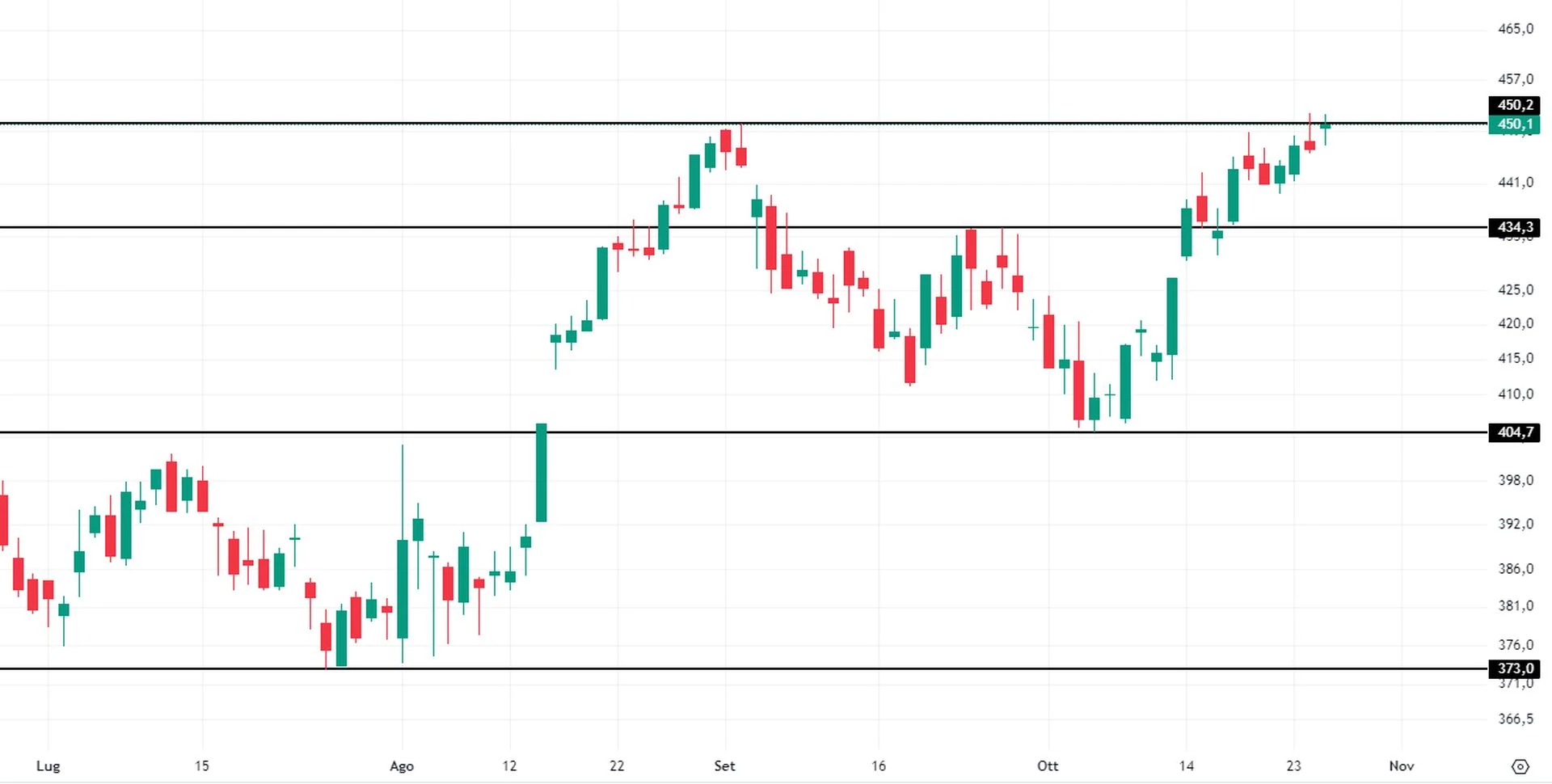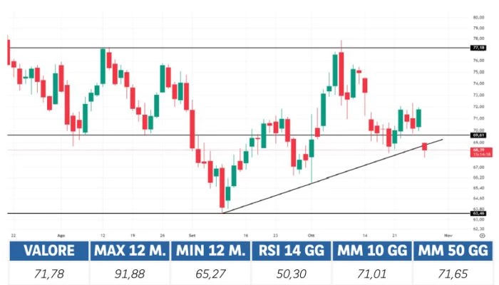 Prima di adottare una decisione di investimento al fine di comprendere appieno i potenziali rischi e benefici connessi alla decisione di investire negli strumenti finanziari quivi menzionati, si invita a leggere attentamente la relativa documentazione di offerta e/o quotazione e, in particolare, le sezioni dedicate ai fattori di rischio connessi all’investimento, ai relativi costi e al trattamento fiscale, e il relativo documento contenente le informazioni chiave (KID), ove disponibile. Tale documentazione è disponibile sul sito web investimenti.bnpparibas.it. L’investimento negli strumenti finanziari quivi menzionati può comportare il rischio di perdita totale o parziale del capitale inizialmente investito. Ove tali strumenti finanziari siano venduti prima della scadenza, l’investitore potrà incorrere anche in perdite in conto capitale. Nel caso in cui tali strumenti finanziari siano acquistati o venduti nel corso della loro durata, il rendimento potrà variare. La presente pubblicazione costituisce materiale pubblicitario e le informazioni in essa contenute hanno scopo meramente informativo e promozionale e non sono da intendersi in alcun modo come ricerca, sollecitazione o raccomandazione all’investimento, offerta al pubblico o consulenza in materia di investimenti. Le informazioni e i grafici a contenuto finanziario quivi riportati sono meramente indicativi e hanno scopo esclusivamente esemplificativo e non esaustivo. I rendimenti passati non sono indicativi, né sono garanzia, dei rendimenti futuri. È responsabilità dell’investitore effettuare un’accurata analisi di tutti i profili fiscali, legali e regolamentari (inclusi i fattori di rischio, tra i quali, i fattori di rischio legati ai tassi di interesse, i fattori di rischio di default e i fattori di rischio legati all’assenza di liquidità) connessi all’investimento negli strumenti finanziari quivi menzionati. BNP Paribas e/o altra società del gruppo BNP Paribas non potranno essere considerate responsabili delle conseguenze finanziarie o di altra natura derivanti dall’investimento in tali strumenti finanziari. Informazioni aggiornate sulla quotazione di questi ultimi sono disponibili sul sito web investimenti.bnpparibas.it. Le raccomandazioni di investimento quivi contenute non soddisfano i requisiti di legge relativi all’indipendenza della ricerca in materia di investimenti e non sono soggette ad alcun divieto di esecuzione di operazioni su strumenti finanziari prima della loro divulgazione.