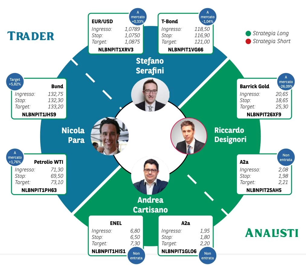 Borsa in Diretta è la newsletter giornaliera di BNP Paribas. Ogni lunedì non perderti l'appuntamento di Weekly FTSE MIB, pillola video in cui si analizza il principale indice di Borsa Italiana e si forniscono strategie operative per la settimana entrante. Inoltre, quotidianamente riceverai informazioni riguardanti notizie finanziarie e appuntamenti macroeconomici della giornata, analisi tecnica dei principali indici azionari FTSE MIB, DAX e S&P500 e aggiornamenti delle Trade Idea fatte dai migliori trader italiani durante House of Trading.