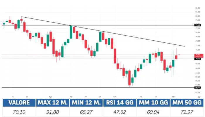 Prima di adottare una decisione di investimento al fine di comprendere appieno i potenziali rischi e benefici connessi alla decisione di investire negli strumenti finanziari quivi menzionati, si invita a leggere attentamente la relativa documentazione di offerta e/o quotazione e, in particolare, le sezioni dedicate ai fattori di rischio connessi all’investimento, ai relativi costi e al trattamento fiscale, e il relativo documento contenente le informazioni chiave (KID), ove disponibile. Tale documentazione è disponibile sul sito web investimenti.bnpparibas.it. L’investimento negli strumenti finanziari quivi menzionati può comportare il rischio di perdita totale o parziale del capitale inizialmente investito. Ove tali strumenti finanziari siano venduti prima della scadenza, l’investitore potrà incorrere anche in perdite in conto capitale. Nel caso in cui tali strumenti finanziari siano acquistati o venduti nel corso della loro durata, il rendimento potrà variare. La presente pubblicazione costituisce materiale pubblicitario e le informazioni in essa contenute hanno scopo meramente informativo e promozionale e non sono da intendersi in alcun modo come ricerca, sollecitazione o raccomandazione all’investimento, offerta al pubblico o consulenza in materia di investimenti. Le informazioni e i grafici a contenuto finanziario quivi riportati sono meramente indicativi e hanno scopo esclusivamente esemplificativo e non esaustivo. I rendimenti passati non sono indicativi, né sono garanzia, dei rendimenti futuri. È responsabilità dell’investitore effettuare un’accurata analisi di tutti i profili fiscali, legali e regolamentari (inclusi i fattori di rischio, tra i quali, i fattori di rischio legati ai tassi di interesse, i fattori di rischio di default e i fattori di rischio legati all’assenza di liquidità) connessi all’investimento negli strumenti finanziari quivi menzionati. BNP Paribas e/o altra società del gruppo BNP Paribas non potranno essere considerate responsabili delle conseguenze finanziarie o di altra natura derivanti dall’investimento in tali strumenti finanziari. Informazioni aggiornate sulla quotazione di questi ultimi sono disponibili sul sito web investimenti.bnpparibas.it. Le raccomandazioni di investimento quivi contenute non soddisfano i requisiti di legge relativi all’indipendenza della ricerca in materia di investimenti e non sono soggette ad alcun divieto di esecuzione di operazioni su strumenti finanziari prima della loro divulgazione.