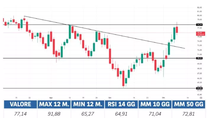 Prima di adottare una decisione di investimento al fine di comprendere appieno i potenziali rischi e benefici connessi alla decisione di investire negli strumenti finanziari quivi menzionati, si invita a leggere attentamente la relativa documentazione di offerta e/o quotazione e, in particolare, le sezioni dedicate ai fattori di rischio connessi all’investimento, ai relativi costi e al trattamento fiscale, e il relativo documento contenente le informazioni chiave (KID), ove disponibile. Tale documentazione è disponibile sul sito web investimenti.bnpparibas.it. L’investimento negli strumenti finanziari quivi menzionati può comportare il rischio di perdita totale o parziale del capitale inizialmente investito. Ove tali strumenti finanziari siano venduti prima della scadenza, l’investitore potrà incorrere anche in perdite in conto capitale. Nel caso in cui tali strumenti finanziari siano acquistati o venduti nel corso della loro durata, il rendimento potrà variare. La presente pubblicazione costituisce materiale pubblicitario e le informazioni in essa contenute hanno scopo meramente informativo e promozionale e non sono da intendersi in alcun modo come ricerca, sollecitazione o raccomandazione all’investimento, offerta al pubblico o consulenza in materia di investimenti. Le informazioni e i grafici a contenuto finanziario quivi riportati sono meramente indicativi e hanno scopo esclusivamente esemplificativo e non esaustivo. I rendimenti passati non sono indicativi, né sono garanzia, dei rendimenti futuri. È responsabilità dell’investitore effettuare un’accurata analisi di tutti i profili fiscali, legali e regolamentari (inclusi i fattori di rischio, tra i quali, i fattori di rischio legati ai tassi di interesse, i fattori di rischio di default e i fattori di rischio legati all’assenza di liquidità) connessi all’investimento negli strumenti finanziari quivi menzionati. BNP Paribas e/o altra società del gruppo BNP Paribas non potranno essere considerate responsabili delle conseguenze finanziarie o di altra natura derivanti dall’investimento in tali strumenti finanziari. Informazioni aggiornate sulla quotazione di questi ultimi sono disponibili sul sito web investimenti.bnpparibas.it. Le raccomandazioni di investimento quivi contenute non soddisfano i requisiti di legge relativi all’indipendenza della ricerca in materia di investimenti e non sono soggette ad alcun divieto di esecuzione di operazioni su strumenti finanziari prima della loro divulgazione.