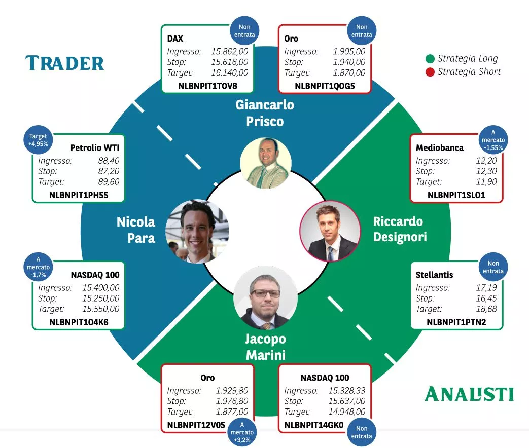Borsa in Diretta è la newsletter giornaliera di BNP Paribas. Ogni lunedì non perderti l'appuntamento di Weekly FTSE MIB, pillola video in cui si analizza il principale indice di Borsa Italiana e si forniscono strategie operative per la settimana entrante. Inoltre, quotidianamente riceverai informazioni riguardanti notizie finanziarie e appuntamenti macroeconomici della giornata, analisi tecnica dei principali indici azionari FTSE MIB, DAX e S&P500 e aggiornamenti delle Trade Idea fatte dai migliori trader italiani durante House of Trading.