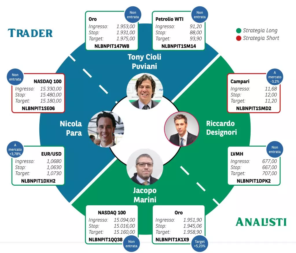 Borsa in Diretta è la newsletter giornaliera di BNP Paribas. Ogni lunedì non perderti l'appuntamento di Weekly FTSE MIB, pillola video in cui si analizza il principale indice di Borsa Italiana e si forniscono strategie operative per la settimana entrante. Inoltre, quotidianamente riceverai informazioni riguardanti notizie finanziarie e appuntamenti macroeconomici della giornata, analisi tecnica dei principali indici azionari FTSE MIB, DAX e S&P500 e aggiornamenti delle Trade Idea fatte dai migliori trader italiani durante House of Trading.