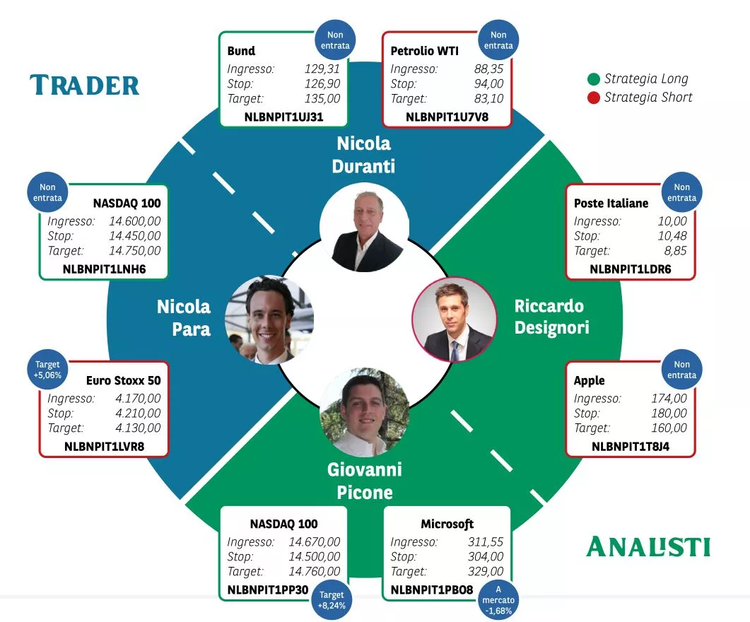 Borsa in Diretta è la newsletter giornaliera di BNP Paribas. Ogni lunedì non perderti l'appuntamento di Weekly FTSE MIB, pillola video in cui si analizza il principale indice di Borsa Italiana e si forniscono strategie operative per la settimana entrante. Inoltre, quotidianamente riceverai informazioni riguardanti notizie finanziarie e appuntamenti macroeconomici della giornata, analisi tecnica dei principali indici azionari FTSE MIB, DAX e S&P500 e aggiornamenti delle Trade Idea fatte dai migliori trader italiani durante House of Trading.