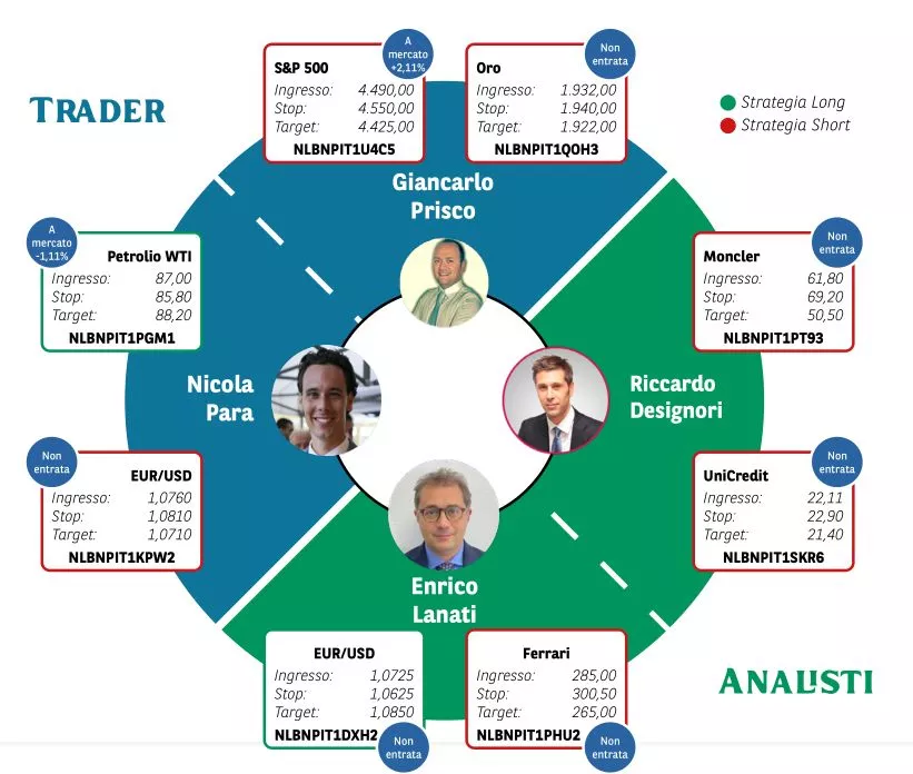 Borsa in Diretta è la newsletter giornaliera di BNP Paribas. Ogni lunedì non perderti l'appuntamento di Weekly FTSE MIB, pillola video in cui si analizza il principale indice di Borsa Italiana e si forniscono strategie operative per la settimana entrante. Inoltre, quotidianamente riceverai informazioni riguardanti notizie finanziarie e appuntamenti macroeconomici della giornata, analisi tecnica dei principali indici azionari FTSE MIB, DAX e S&P500 e aggiornamenti delle Trade Idea fatte dai migliori trader italiani durante House of Trading.