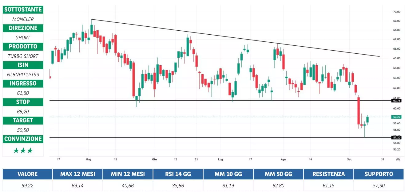 Prima di adottare una decisione di investimento al fine di comprendere appieno i potenziali rischi e benefici connessi alla decisione di investire negli strumenti finanziari quivi menzionati, si invita a leggere attentamente la relativa documentazione di offerta e/o quotazione e, in particolare, le sezioni dedicate ai fattori di rischio connessi all’investimento, ai relativi costi e al trattamento fiscale, e il relativo documento contenente le informazioni chiave (KID), ove disponibile. Tale documentazione è disponibile sul sito web investimenti.bnpparibas.it. L’investimento negli strumenti finanziari quivi menzionati può comportare il rischio di perdita totale o parziale del capitale inizialmente investito. Ove tali strumenti finanziari siano venduti prima della scadenza, l’investitore potrà incorrere anche in perdite in conto capitale. Nel caso in cui tali strumenti finanziari siano acquistati o venduti nel corso della loro durata, il rendimento potrà variare. La presente pubblicazione costituisce materiale pubblicitario e le informazioni in essa contenute hanno scopo meramente informativo e promozionale e non sono da intendersi in alcun modo come ricerca, sollecitazione o raccomandazione all’investimento, offerta al pubblico o consulenza in materia di investimenti. Le informazioni e i grafici a contenuto finanziario quivi riportati sono meramente indicativi e hanno scopo esclusivamente esemplificativo e non esaustivo. I rendimenti passati non sono indicativi, né sono garanzia, dei rendimenti futuri. È responsabilità dell’investitore effettuare un’accurata analisi di tutti i profili fiscali, legali e regolamentari (inclusi i fattori di rischio, tra i quali, i fattori di rischio legati ai tassi di interesse, i fattori di rischio di default e i fattori di rischio legati all’assenza di liquidità) connessi all’investimento negli strumenti finanziari quivi menzionati. BNP Paribas e/o altra società del gruppo BNP Paribas non potranno essere considerate responsabili delle conseguenze finanziarie o di altra natura derivanti dall’investimento in tali strumenti finanziari. Informazioni aggiornate sulla quotazione di questi ultimi sono disponibili sul sito web investimenti.bnpparibas.it. Le raccomandazioni di investimento quivi contenute non soddisfano i requisiti di legge relativi all’indipendenza della ricerca in materia di investimenti e non sono soggette ad alcun divieto di esecuzione di operazioni su strumenti finanziari prima della loro divulgazione.