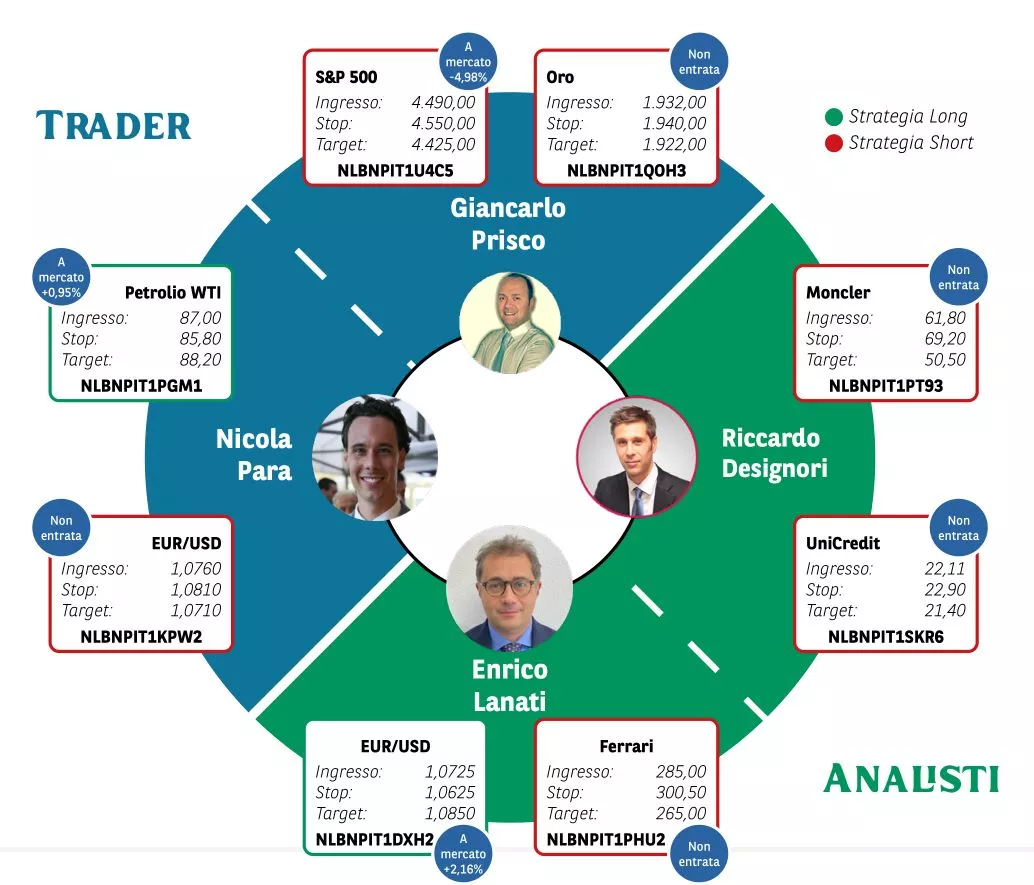 Borsa in Diretta è la newsletter giornaliera di BNP Paribas. Ogni lunedì non perderti l'appuntamento di Weekly FTSE MIB, pillola video in cui si analizza il principale indice di Borsa Italiana e si forniscono strategie operative per la settimana entrante. Inoltre, quotidianamente riceverai informazioni riguardanti notizie finanziarie e appuntamenti macroeconomici della giornata, analisi tecnica dei principali indici azionari FTSE MIB, DAX e S&P500 e aggiornamenti delle Trade Idea fatte dai migliori trader italiani durante House of Trading.