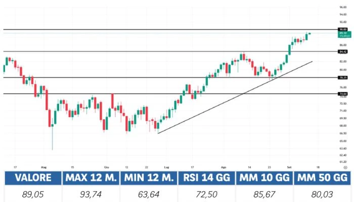 Prima di adottare una decisione di investimento al fine di comprendere appieno i potenziali rischi e benefici connessi alla decisione di investire negli strumenti finanziari quivi menzionati, si invita a leggere attentamente la relativa documentazione di offerta e/o quotazione e, in particolare, le sezioni dedicate ai fattori di rischio connessi all’investimento, ai relativi costi e al trattamento fiscale, e il relativo documento contenente le informazioni chiave (KID), ove disponibile. Tale documentazione è disponibile sul sito web investimenti.bnpparibas.it. L’investimento negli strumenti finanziari quivi menzionati può comportare il rischio di perdita totale o parziale del capitale inizialmente investito. Ove tali strumenti finanziari siano venduti prima della scadenza, l’investitore potrà incorrere anche in perdite in conto capitale. Nel caso in cui tali strumenti finanziari siano acquistati o venduti nel corso della loro durata, il rendimento potrà variare. La presente pubblicazione costituisce materiale pubblicitario e le informazioni in essa contenute hanno scopo meramente informativo e promozionale e non sono da intendersi in alcun modo come ricerca, sollecitazione o raccomandazione all’investimento, offerta al pubblico o consulenza in materia di investimenti. Le informazioni e i grafici a contenuto finanziario quivi riportati sono meramente indicativi e hanno scopo esclusivamente esemplificativo e non esaustivo. I rendimenti passati non sono indicativi, né sono garanzia, dei rendimenti futuri. È responsabilità dell’investitore effettuare un’accurata analisi di tutti i profili fiscali, legali e regolamentari (inclusi i fattori di rischio, tra i quali, i fattori di rischio legati ai tassi di interesse, i fattori di rischio di default e i fattori di rischio legati all’assenza di liquidità) connessi all’investimento negli strumenti finanziari quivi menzionati. BNP Paribas e/o altra società del gruppo BNP Paribas non potranno essere considerate responsabili delle conseguenze finanziarie o di altra natura derivanti dall’investimento in tali strumenti finanziari. Informazioni aggiornate sulla quotazione di questi ultimi sono disponibili sul sito web investimenti.bnpparibas.it. Le raccomandazioni di investimento quivi contenute non soddisfano i requisiti di legge relativi all’indipendenza della ricerca in materia di investimenti e non sono soggette ad alcun divieto di esecuzione di operazioni su strumenti finanziari prima della loro divulgazione.