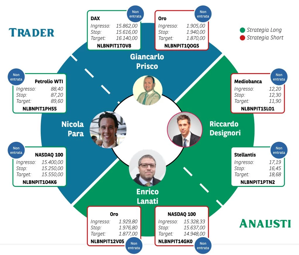 Borsa in Diretta è la newsletter giornaliera di BNP Paribas. Ogni lunedì non perderti l'appuntamento di Weekly FTSE MIB, pillola video in cui si analizza il principale indice di Borsa Italiana e si forniscono strategie operative per la settimana entrante. Inoltre, quotidianamente riceverai informazioni riguardanti notizie finanziarie e appuntamenti macroeconomici della giornata, analisi tecnica dei principali indici azionari FTSE MIB, DAX e S&P500 e aggiornamenti delle Trade Idea fatte dai migliori trader italiani durante House of Trading.